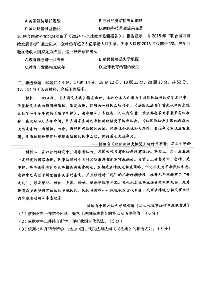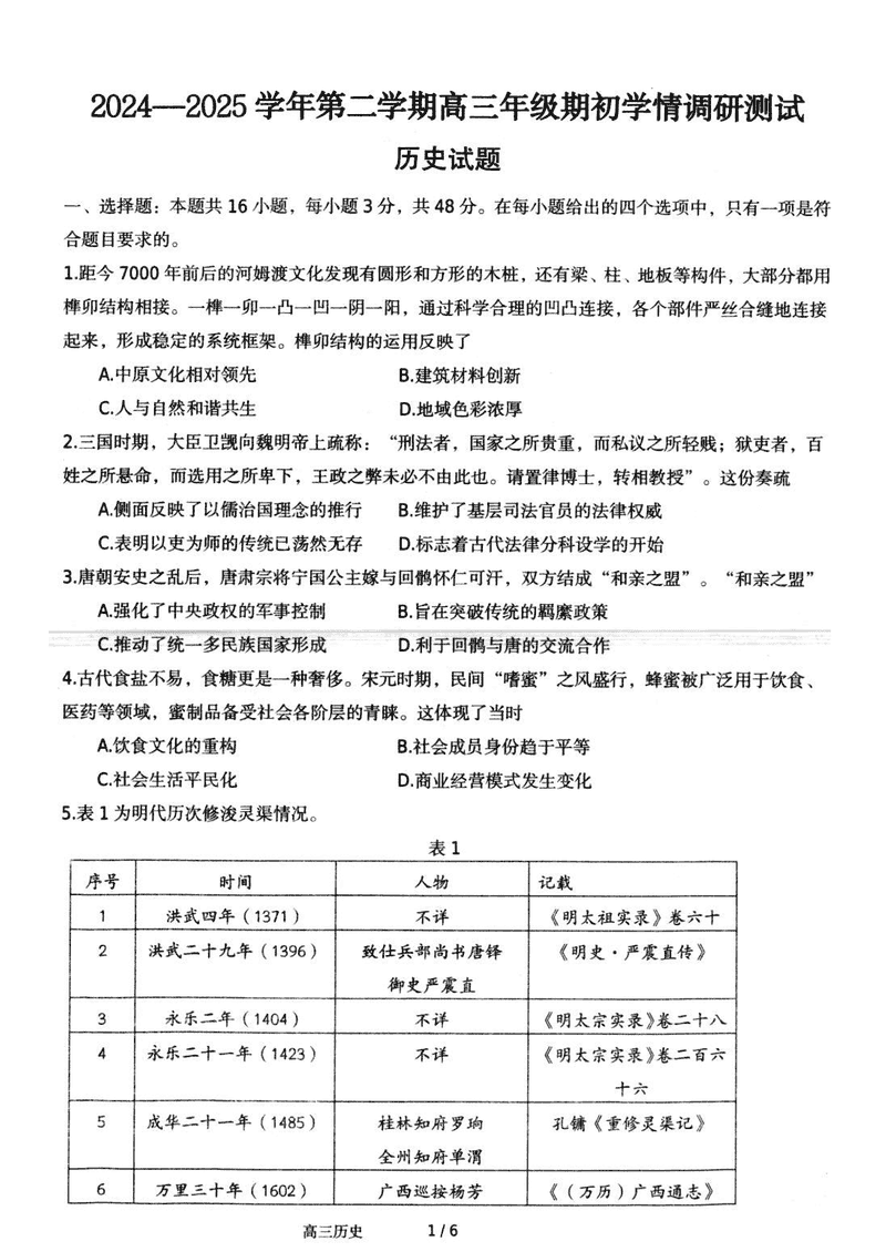 扬州高邮2025年高三下学期期初学情调研历史试题及答案 时间:2025-02-20 江苏 文综试题 扬州高邮2025年高三下学期期初学情调研历史考试已于近日开考,为方便考生考后及时查看考试情况,查漏补缺、弥补不足,本文整理了试题答案解析相关信息! 汇总:扬州高邮2025年高三下学期开学考试题及答案汇总 历史试题及答案解析