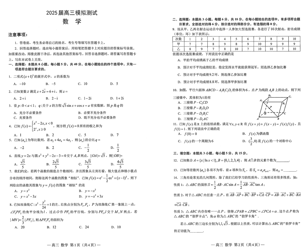 南昌一模暨南昌市2025届高三模拟测试数学试题及答案 时间:2025-02-21 江西 数学试题 南昌一模暨南昌市2025届高三模拟测试数学考试已于近日开考,为方便考生考后及时查看考试情况,查漏补缺、弥补不足,本文整理了试题答案解析相关信息! 汇总:南昌一模暨南昌市2025届高三模拟测试试题及答案汇总 数学试题及答案解析