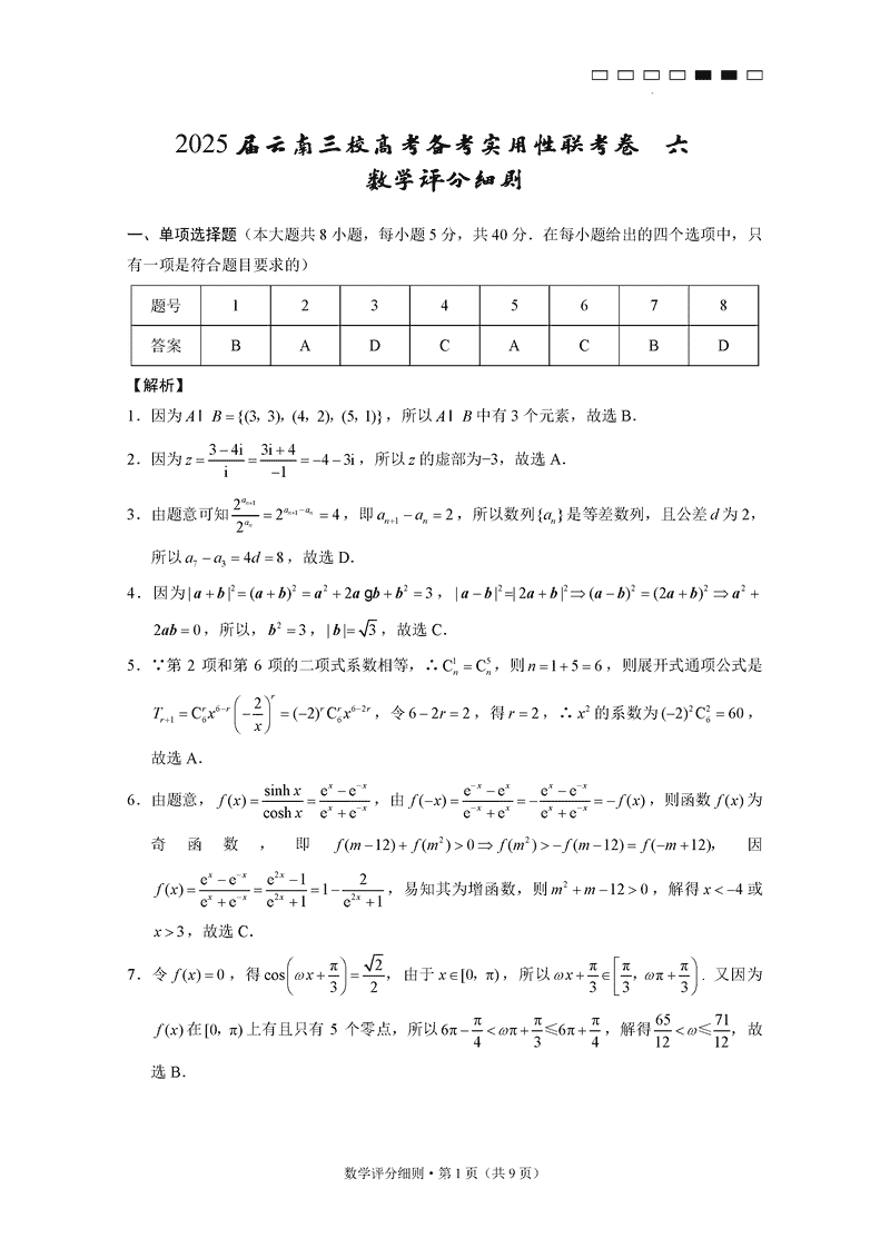 云南省三校2025届高三下高考备考实用性联考卷(六)数学考试已于近日开考,为方便考生考后及时查看考试情况,查漏补缺、弥补不足,本文整理了试题答案解析相关信息!
