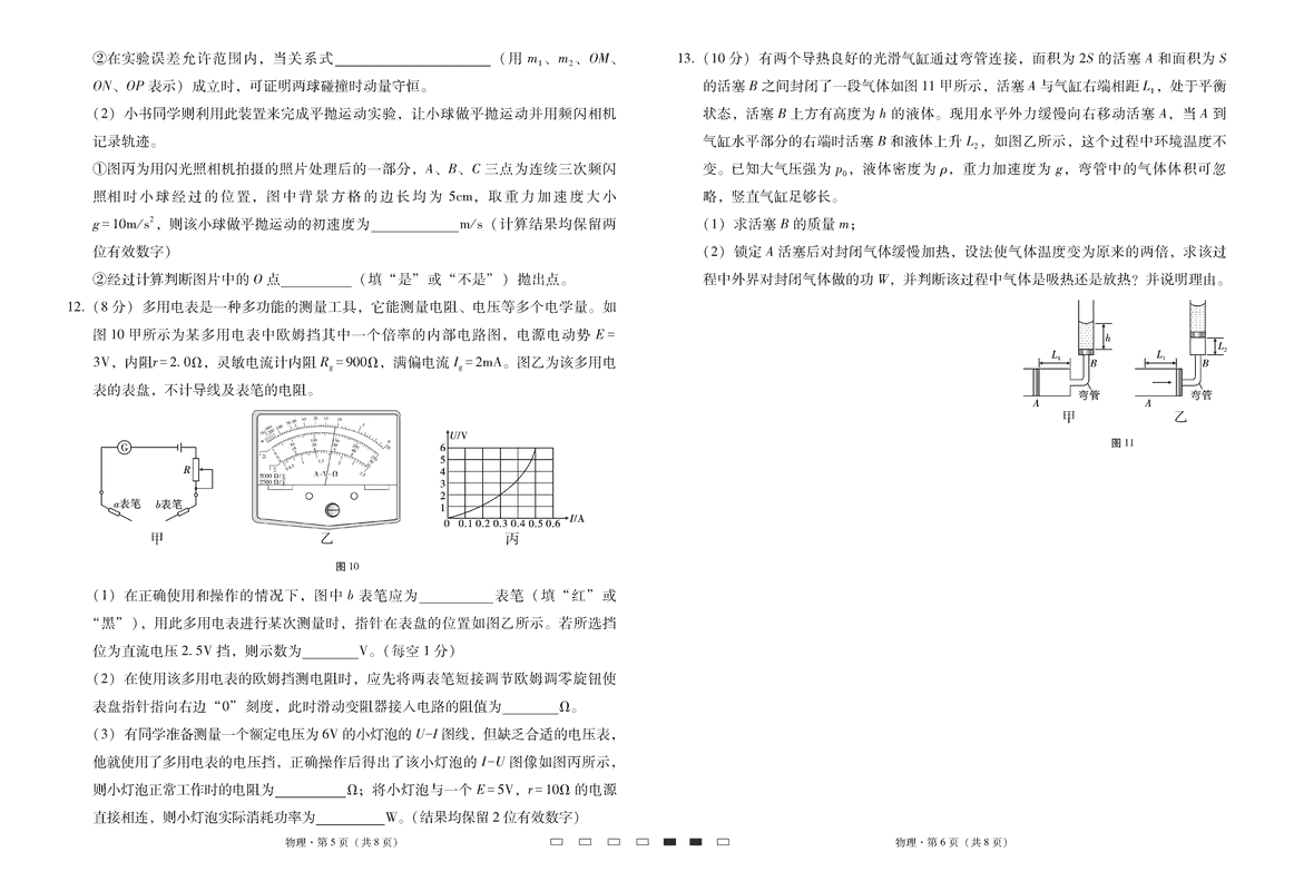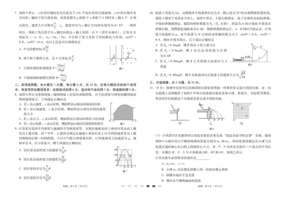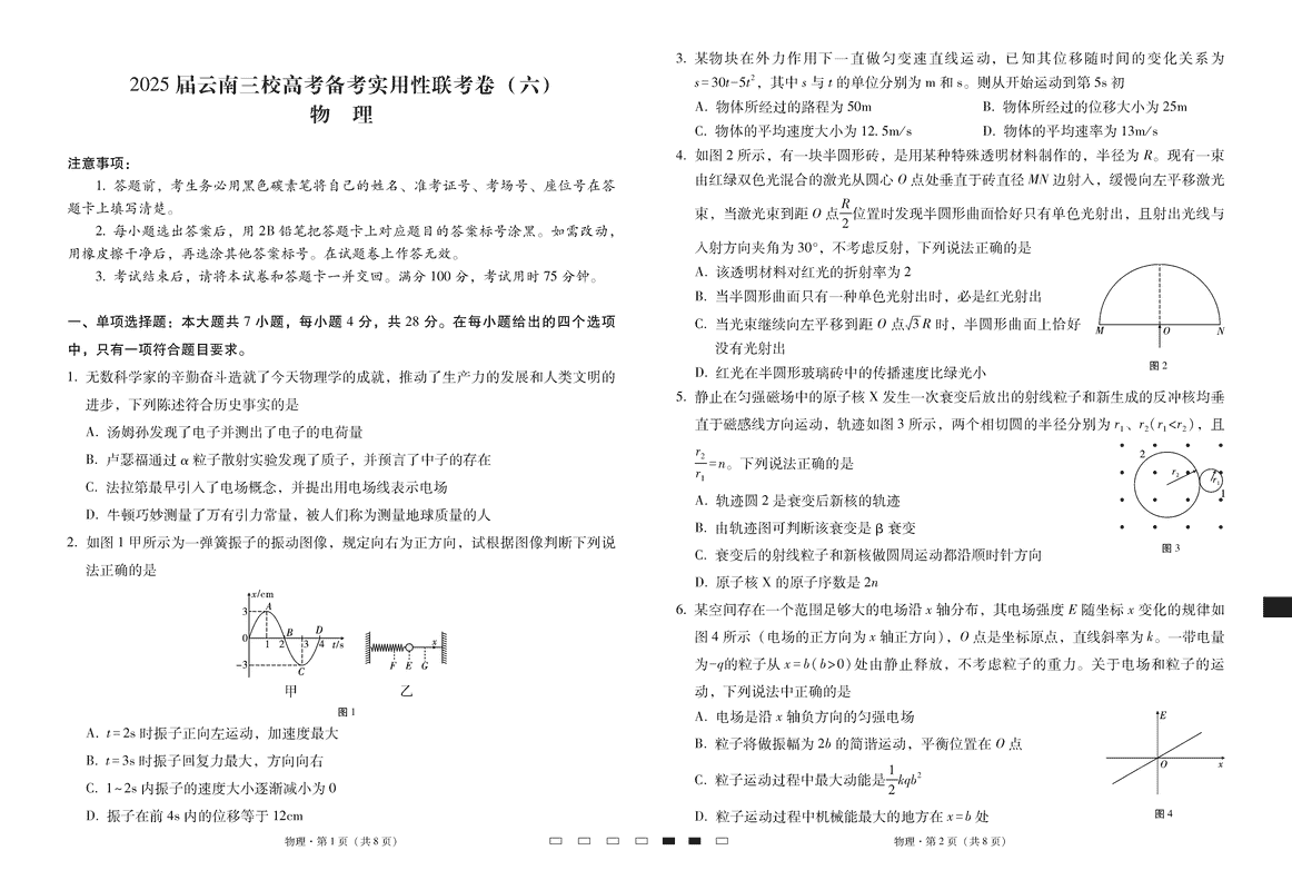 云南省三校2025届高三下高考备考实用性联考卷(六)物理试题及答案