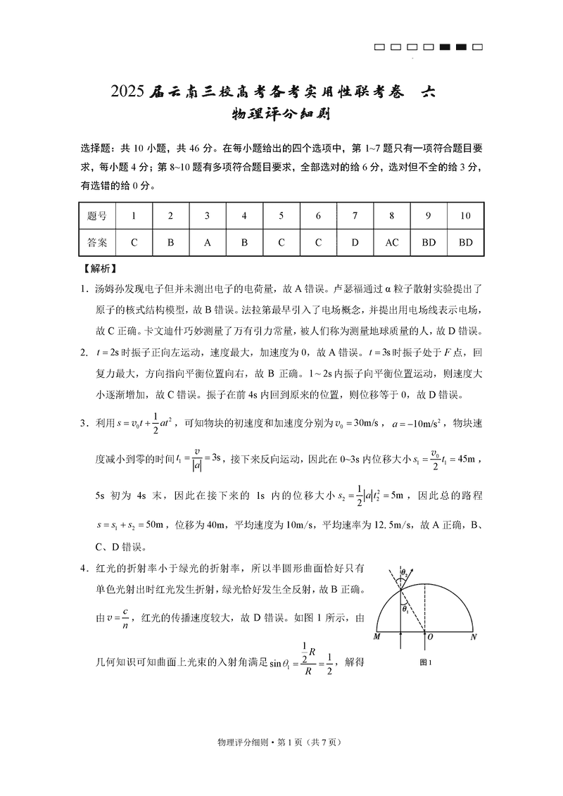 云南省三校2025届高三下高考备考实用性联考卷(六)物理考试已于近日开考,为方便考生考后及时查看考试情况,查漏补缺、弥补不足,本文整理了试题答案解析相关信息!