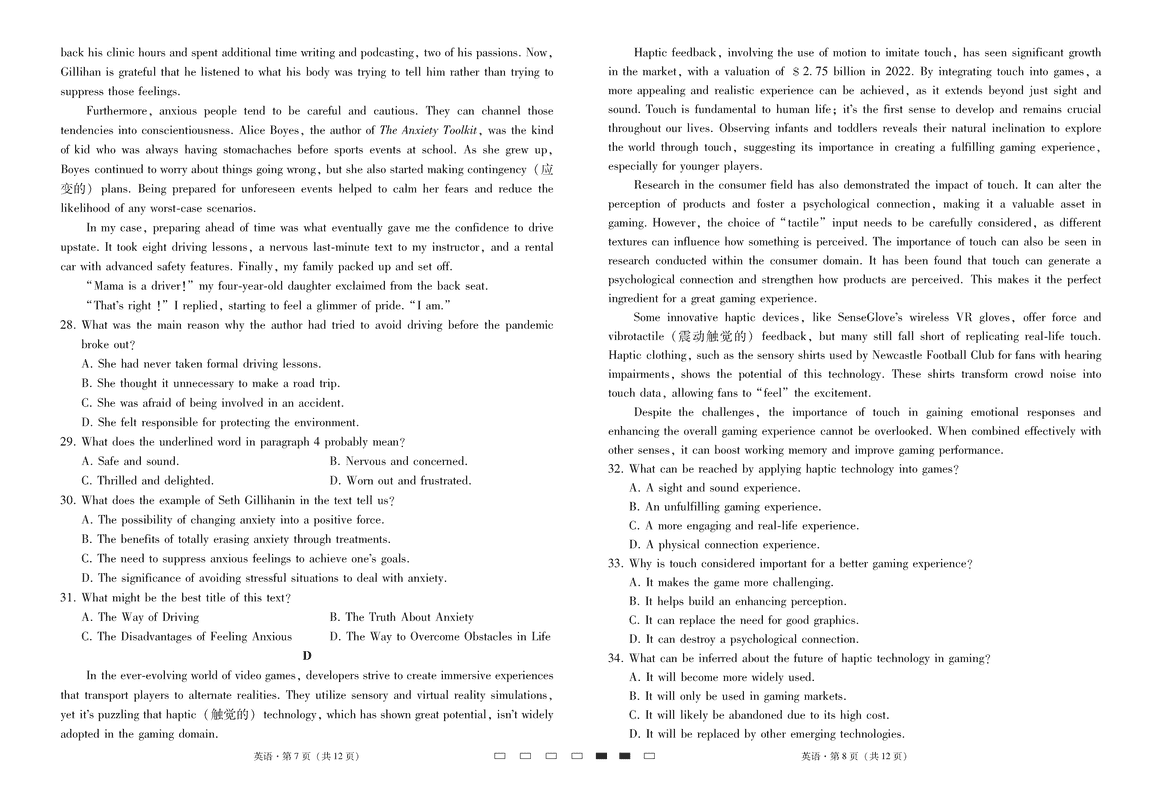 云南省三校2025届高三下高考备考实用性联考卷(六)英语试题及答案