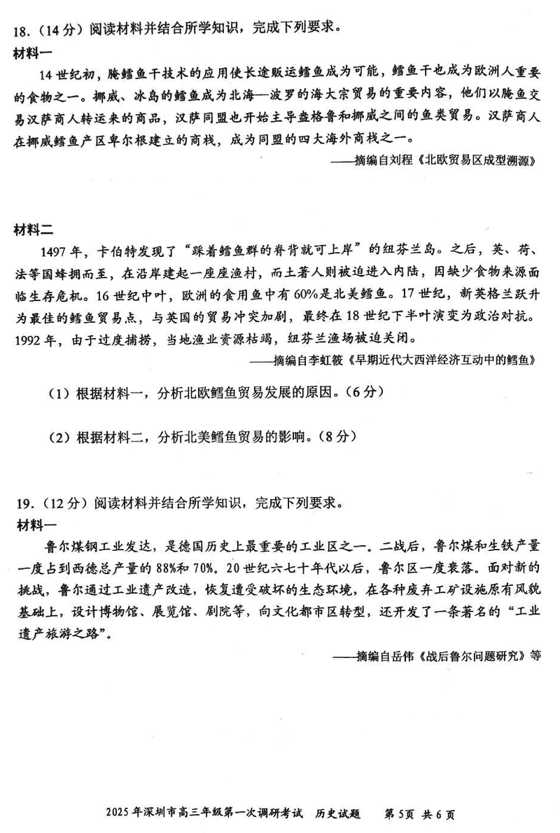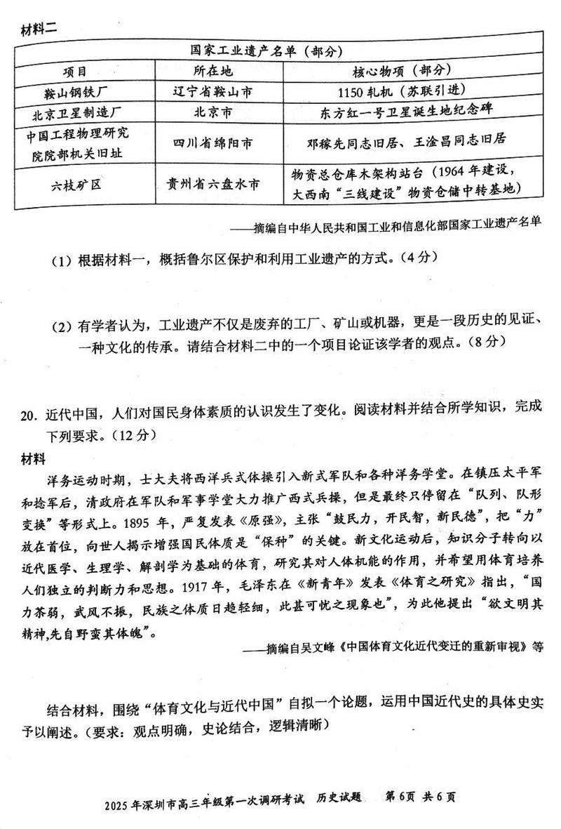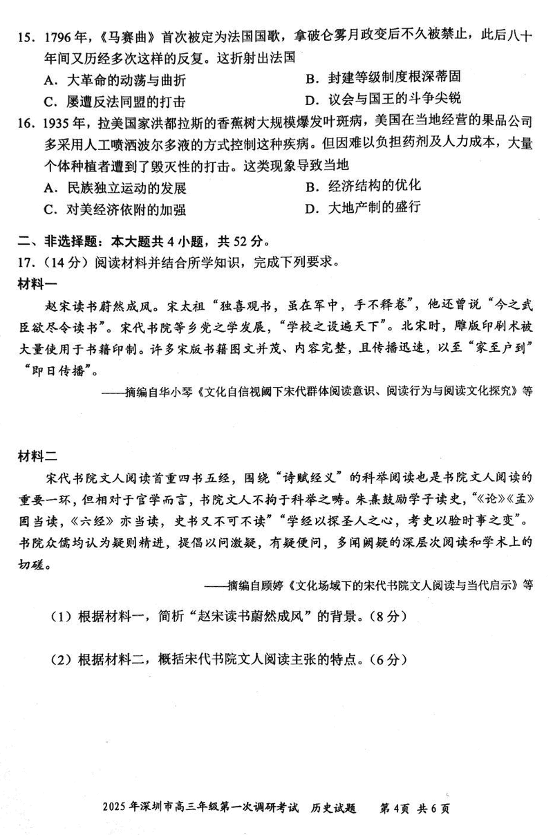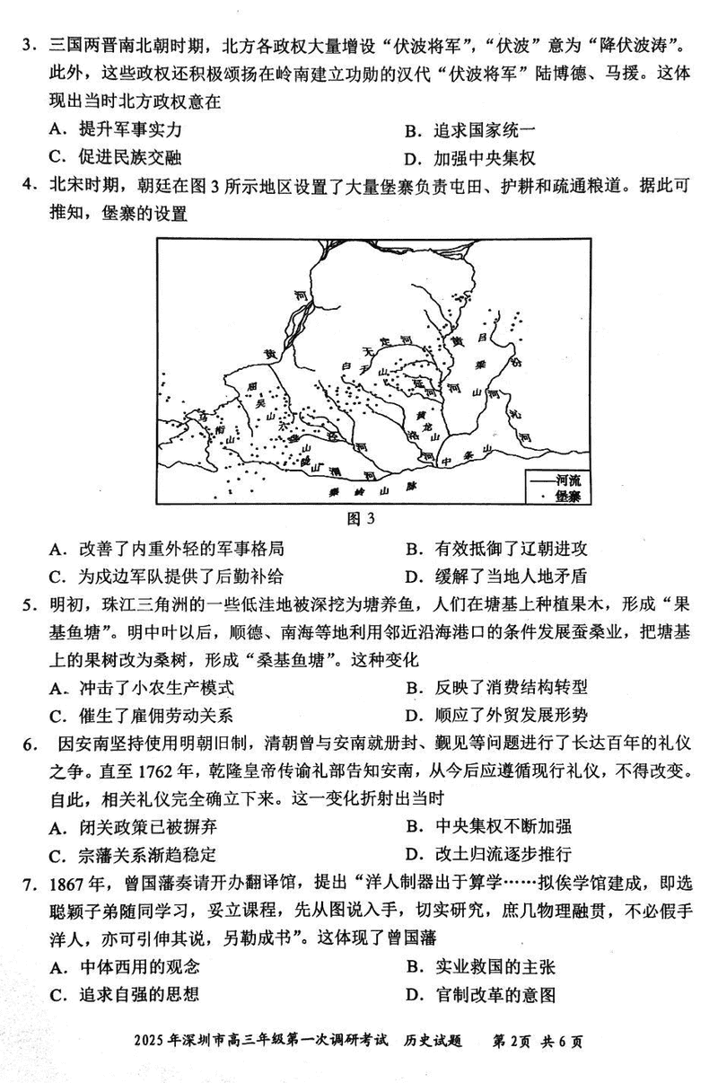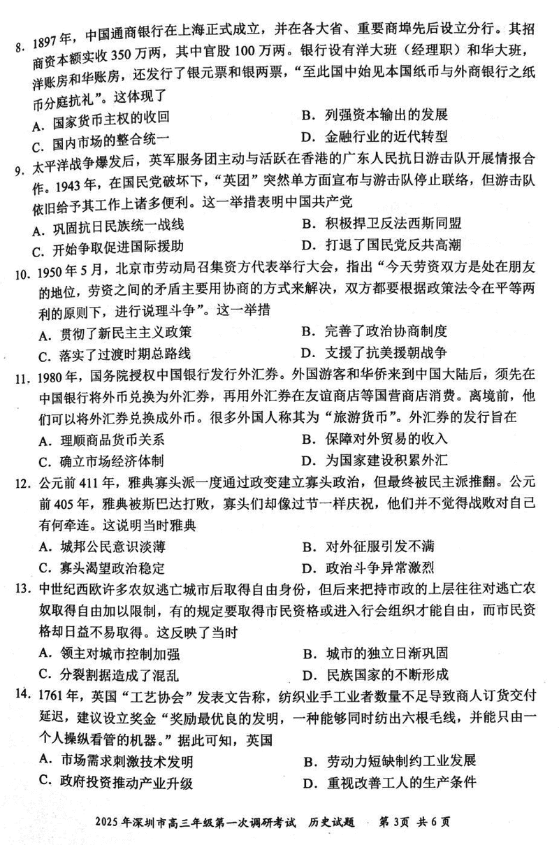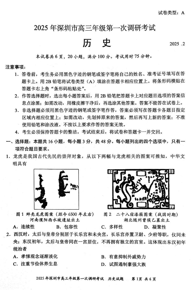 2025届深圳市高三下学期第一次调研历史试题及答案