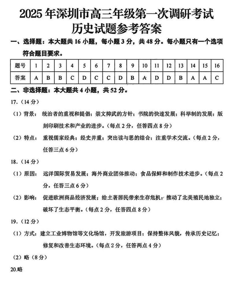 2025届广东省深圳市高三下学期第一次调研历史考试已于近日开考,为方便考生考后及时查看考试情况,查漏补缺、弥补不足,本文整理了试题答案解析相关信息!