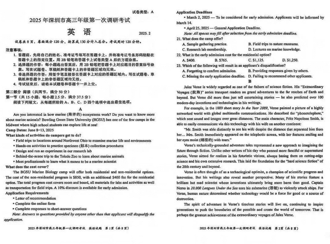 2025届广东省深圳市高三下学期第一次调研英语考试已于近日开考,为方便考生考后及时查看考试情况,查漏补缺、弥补不足,本文整理了试题答案解析相关信息!