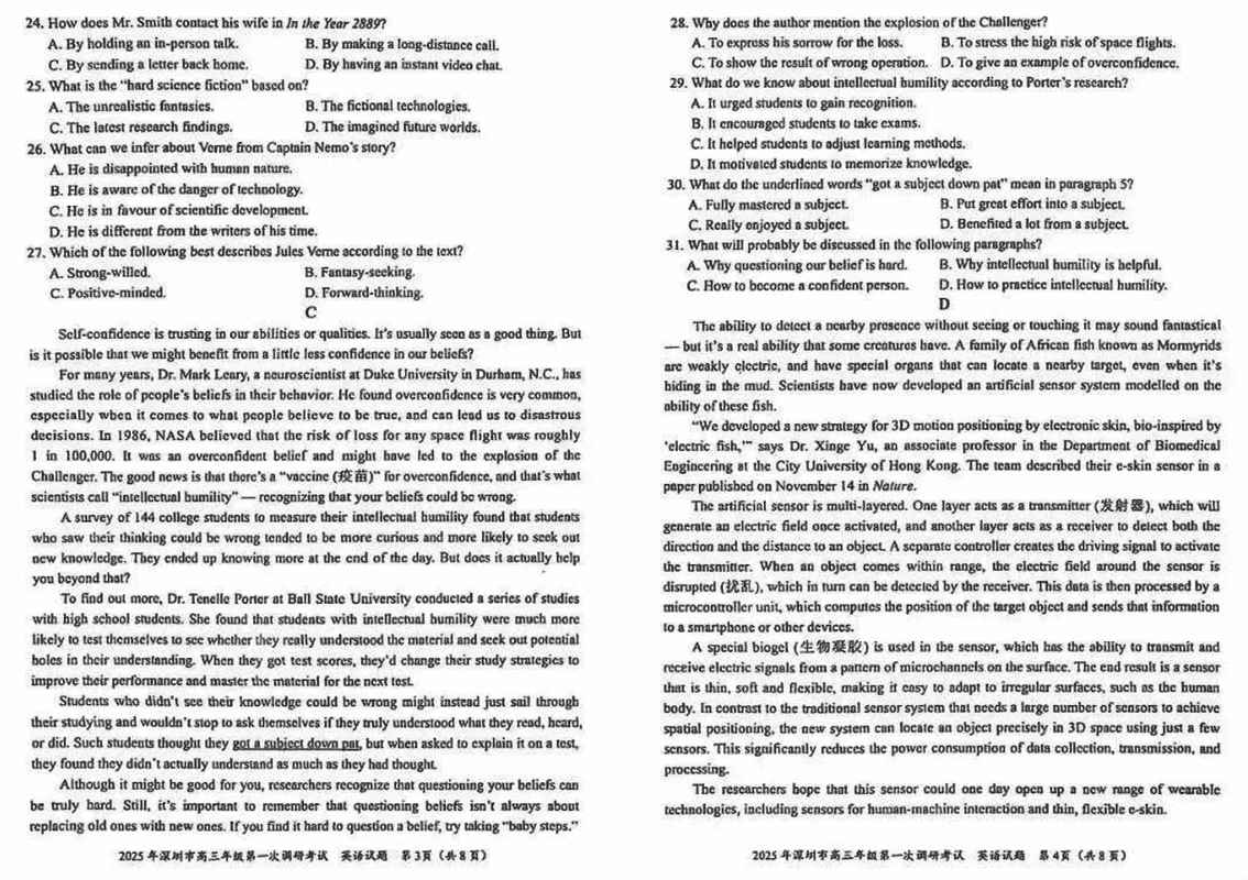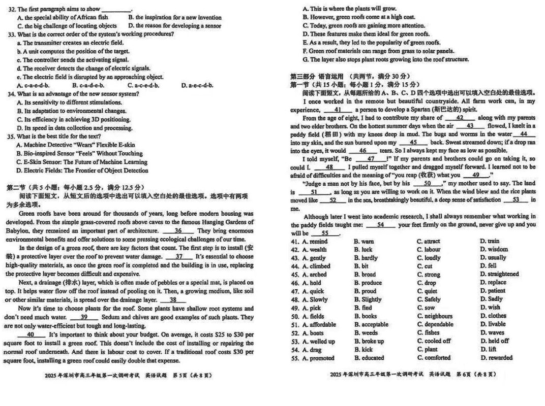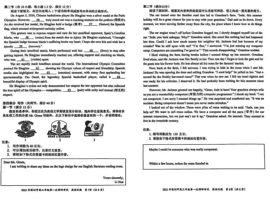 2025届深圳市高三下学期第一次调研英语试题及答案