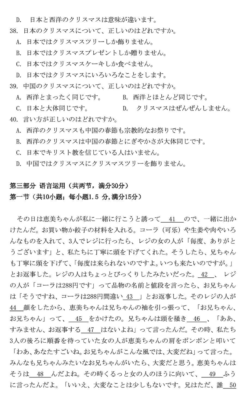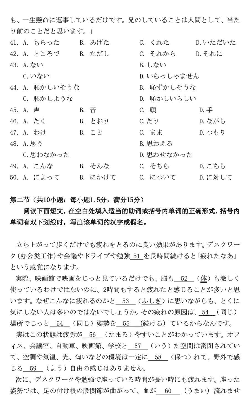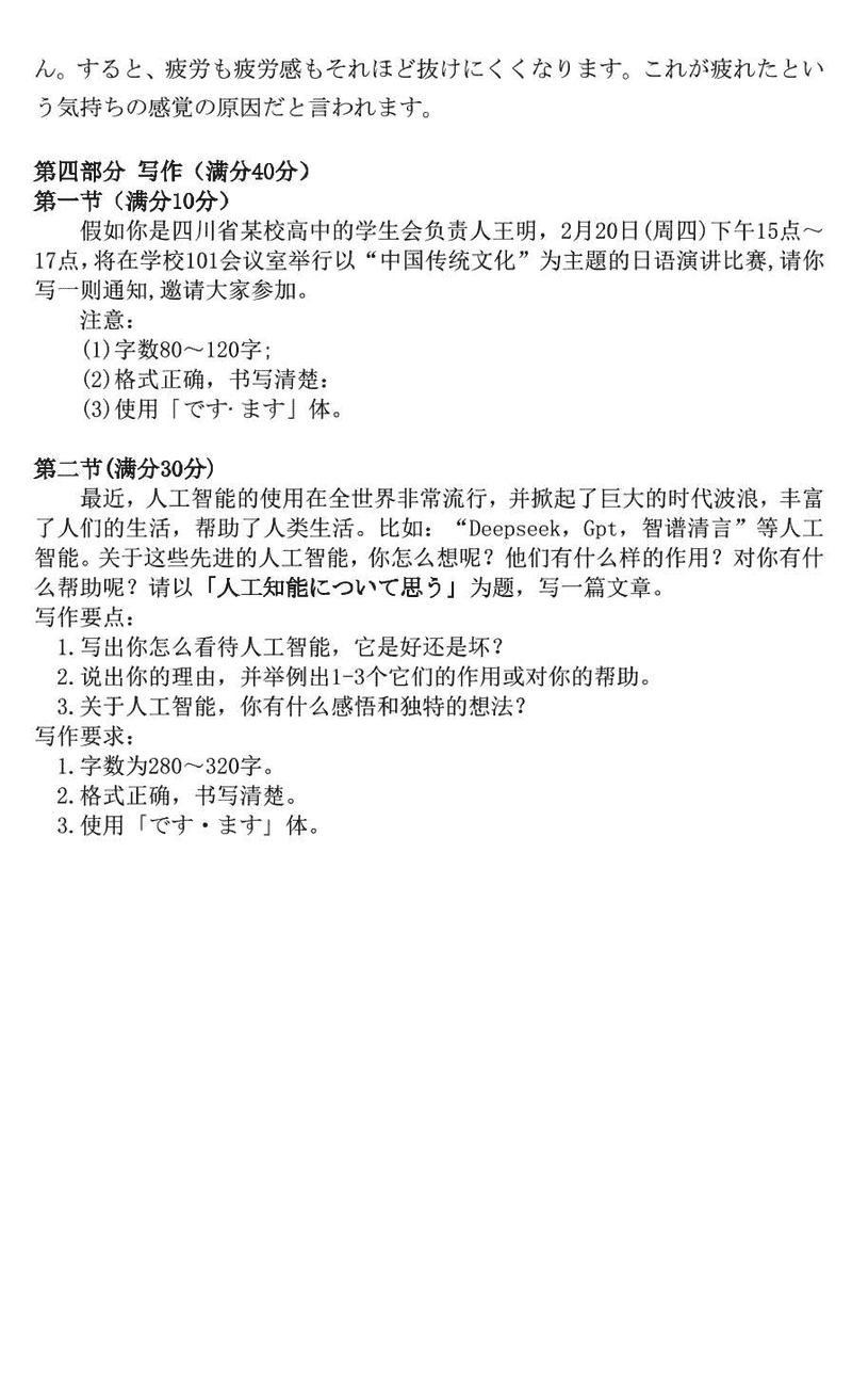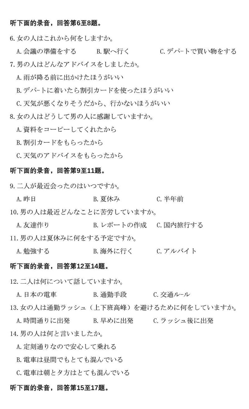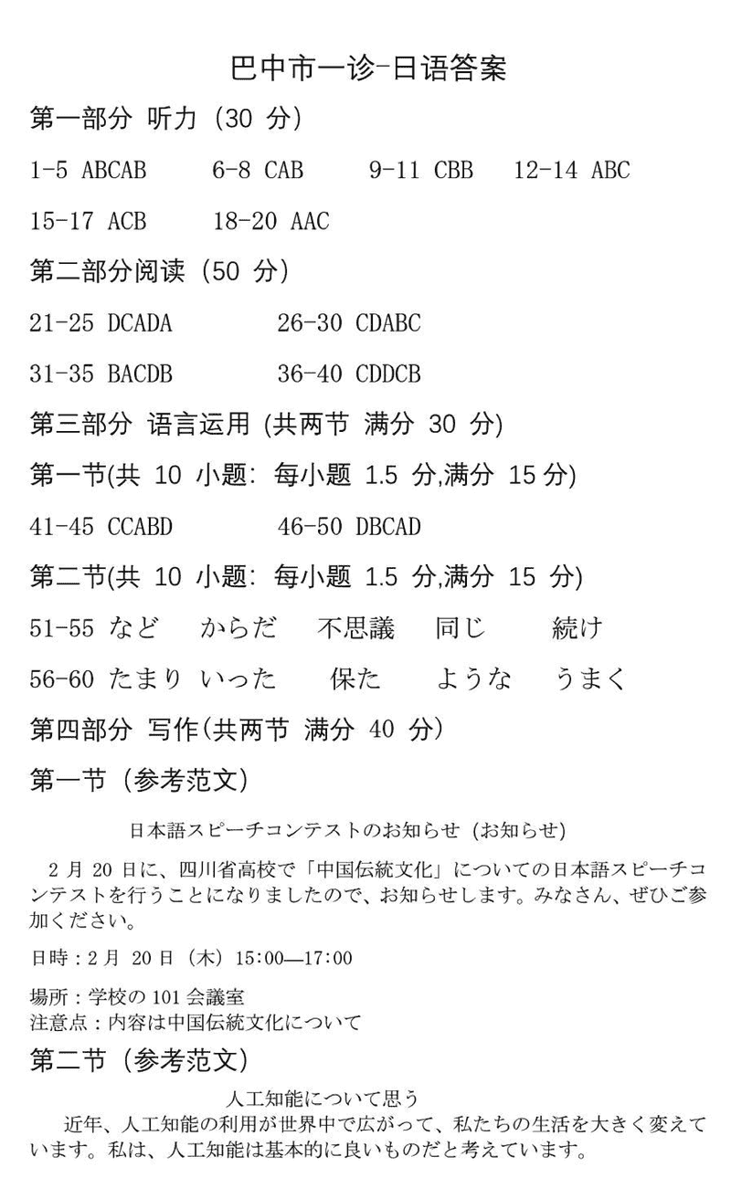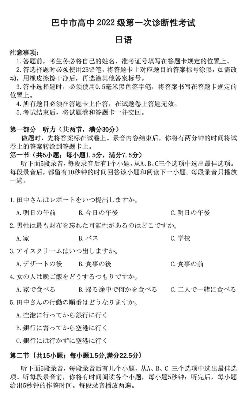 巴中一诊2025年高三第一次诊断性考日语试题及答案 时间:2025-02-22 四川 英语试题 巴中一诊2025年高三第一次诊断性考日语考试已于近日开考,为方便考生考后及时查看考试情况,查漏补缺、弥补不足,本文整理了试题答案解析相关信息! 汇总:巴中一诊2025年高三第一次诊断性考试题及答案汇总 日语试题及答案解析