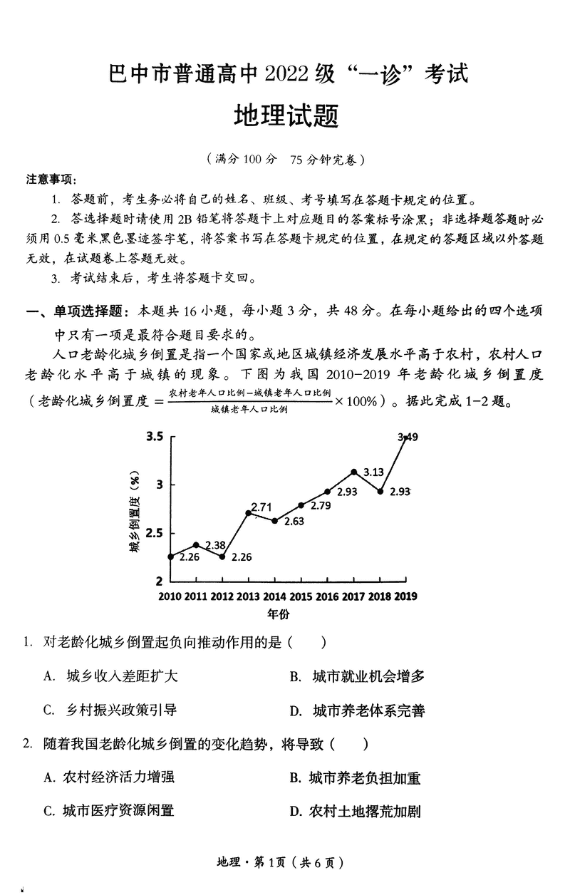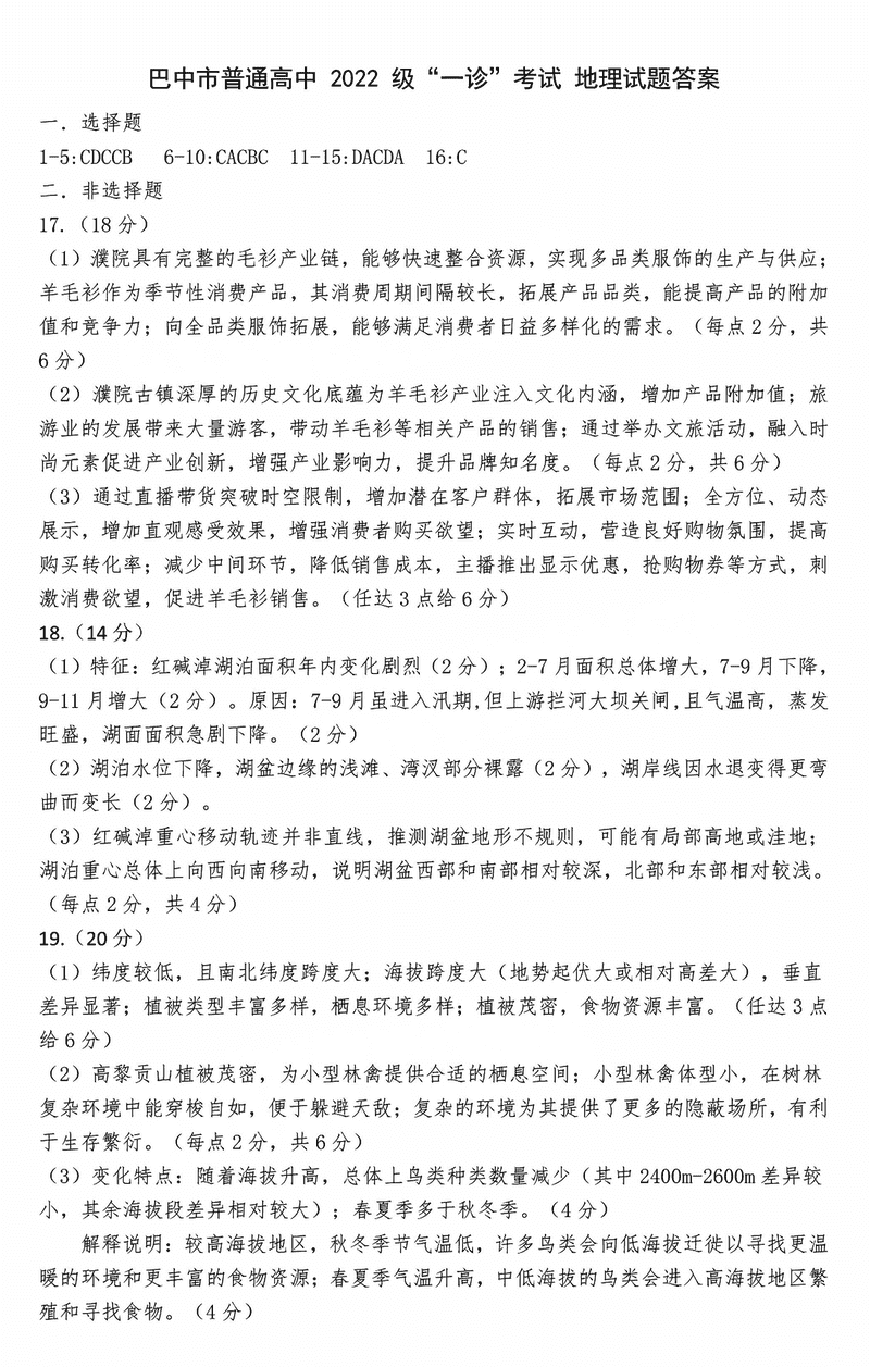 巴中一诊2025年高三第一次诊断性考地理试题及答案 时间:2025-02-22 四川 文综试题 巴中一诊2025年高三第一次诊断性考地理考试已于近日开考,为方便考生考后及时查看考试情况,查漏补缺、弥补不足,本文整理了试题答案解析相关信息! 汇总:巴中一诊2025年高三第一次诊断性考试题及答案汇总 地理试题及答案解析