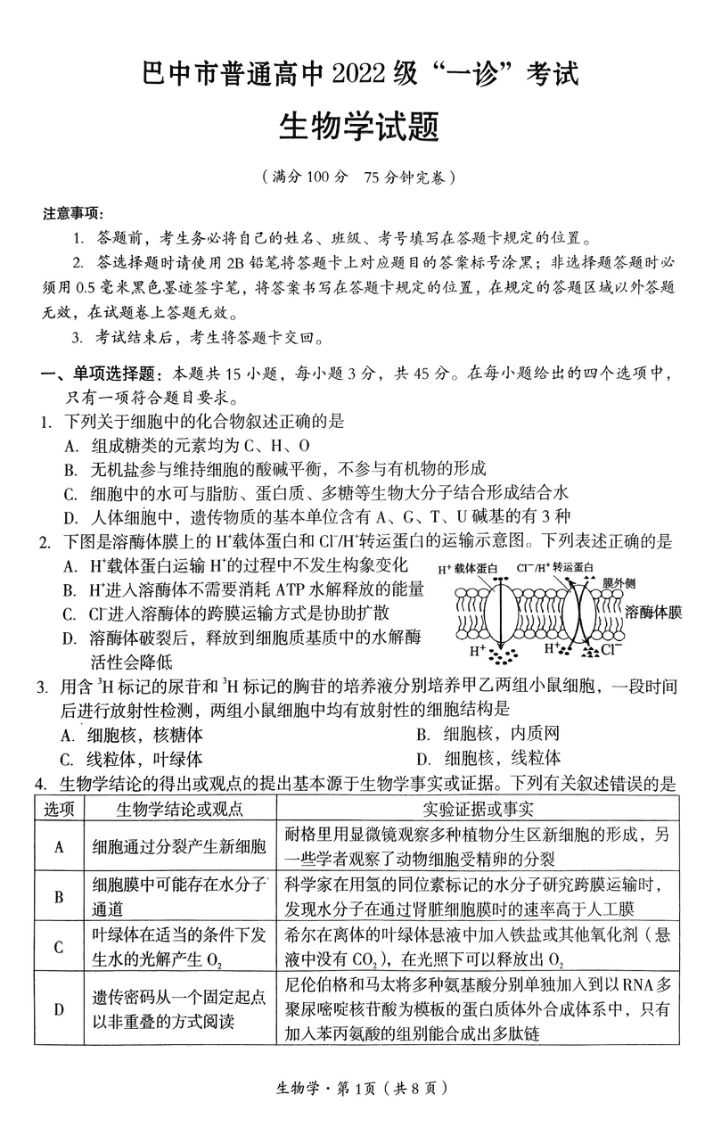 巴中一诊2025年高三第一次诊断性考生物试题及答案 时间:2025-02-22 四川 理综试题 巴中一诊2025年高三第一次诊断性考生物考试已于近日开考,为方便考生考后及时查看考试情况,查漏补缺、弥补不足,本文整理了试题答案解析相关信息! 汇总:巴中一诊2025年高三第一次诊断性考试题及答案汇总 生物试题及答案解析