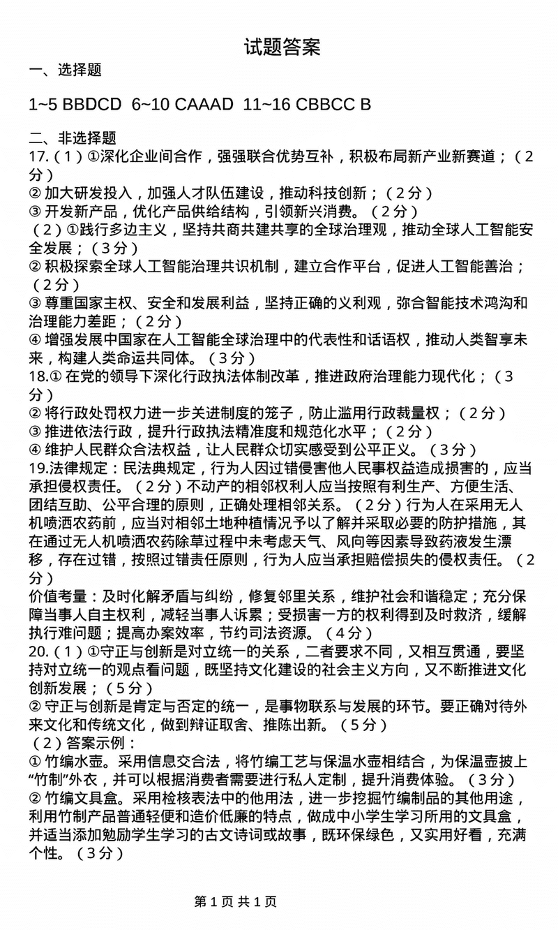 巴中一诊2025年高三第一次诊断性考政治试题及答案 时间:2025-02-22 四川 文综试题 巴中一诊2025年高三第一次诊断性考政治考试已于近日开考,为方便考生考后及时查看考试情况,查漏补缺、弥补不足,本文整理了试题答案解析相关信息! 汇总:巴中一诊2025年高三第一次诊断性考试题及答案汇总 政治试题及答案解析