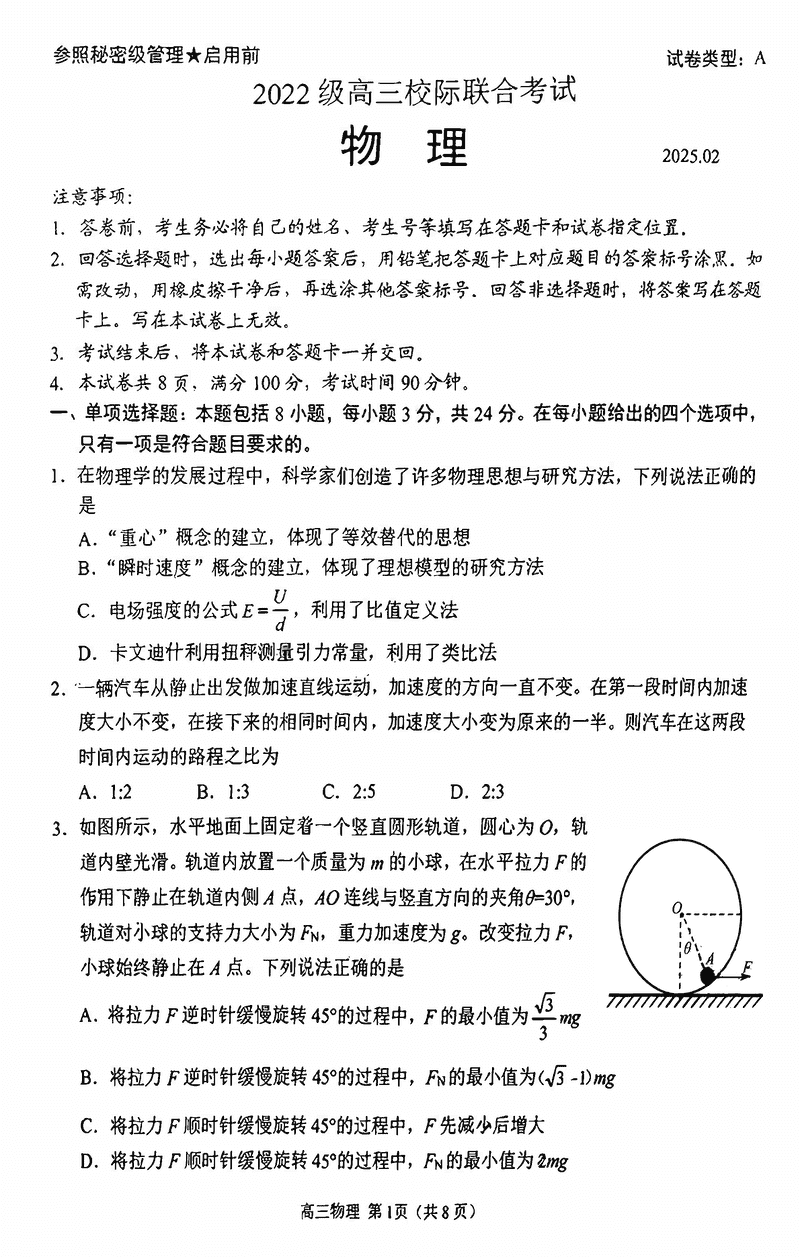 日照一模2025届高三下学期校际联考物理试题及答案 时间:2025-02-22 山东 理综试题 山东省日照一模2025届高三下学期校际联考物理考试已于近日开考,为方便考生考后及时查看考试情况,查漏补缺、弥补不足,本文整理了试题答案解析相关信息! 汇总:日照一模2025届高三下学期校际联考题及答案汇总 物理试题及答案解析