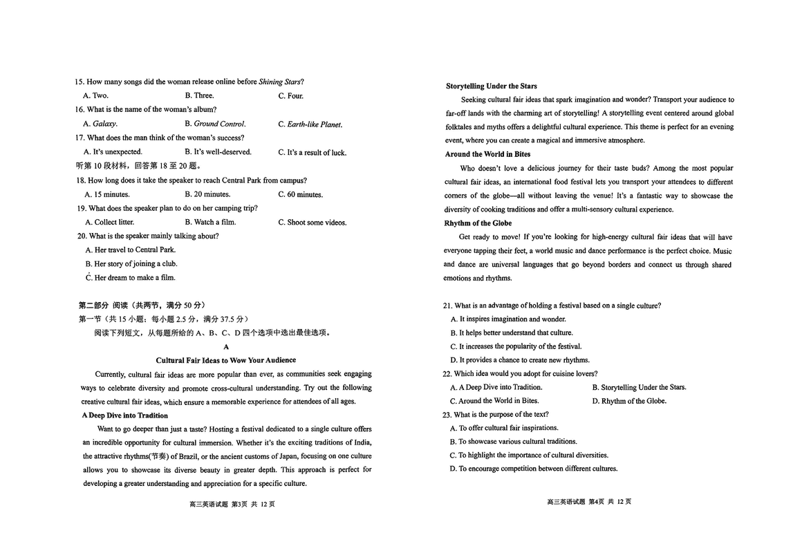 日照一模2025届高三下学期校际联考英语试题及答案 时间:2025-02-22 山东 英语试题 山东省日照一模2025届高三下学期校际联考英语考试已于近日开考,为方便考生考后及时查看考试情况,查漏补缺、弥补不足,本文整理了试题答案解析相关信息! 汇总:日照一模2025届高三下学期校际联考题及答案汇总 英语试题及答案解析