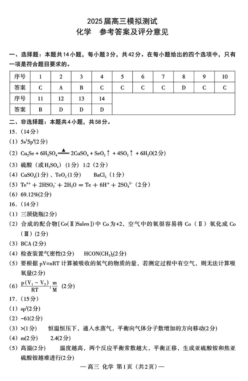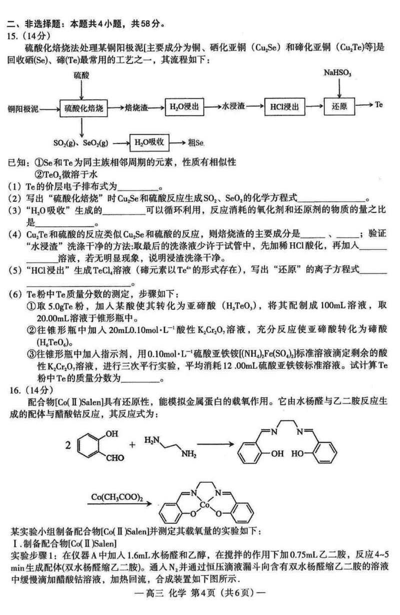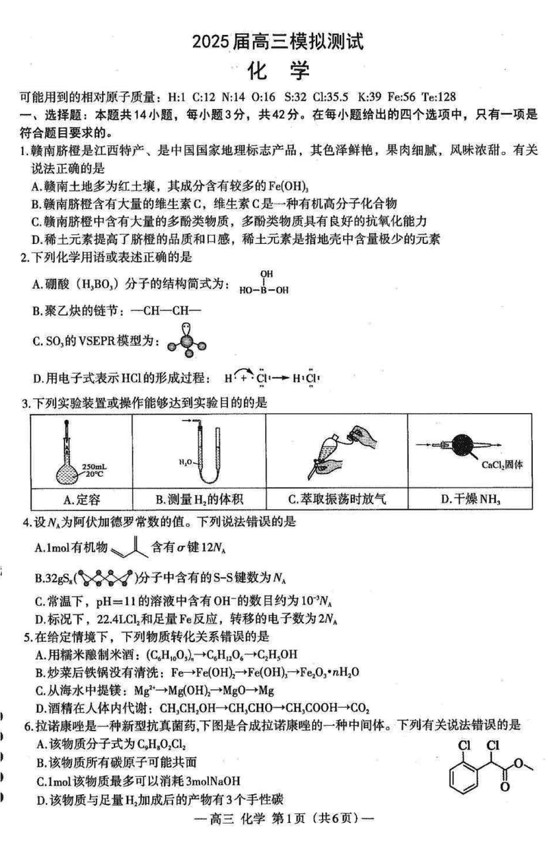南昌一模暨南昌市2025届高三模拟测试化学试题及答案 时间:2025-02-23 理综试题 南昌一模暨南昌市2025届高三模拟测试化学考试已于近日开考,为方便考生考后及时查看考试情况,查漏补缺、弥补不足,本文整理了试题答案解析相关信息! 汇总:南昌一模暨南昌市2025届高三模拟测试试题及答案汇总 化学试题及答案解析