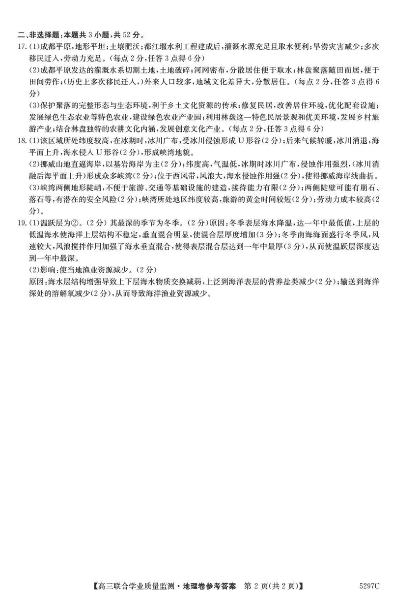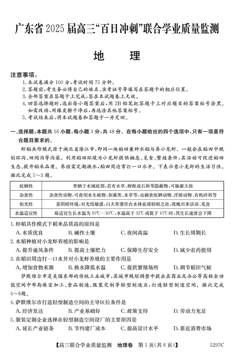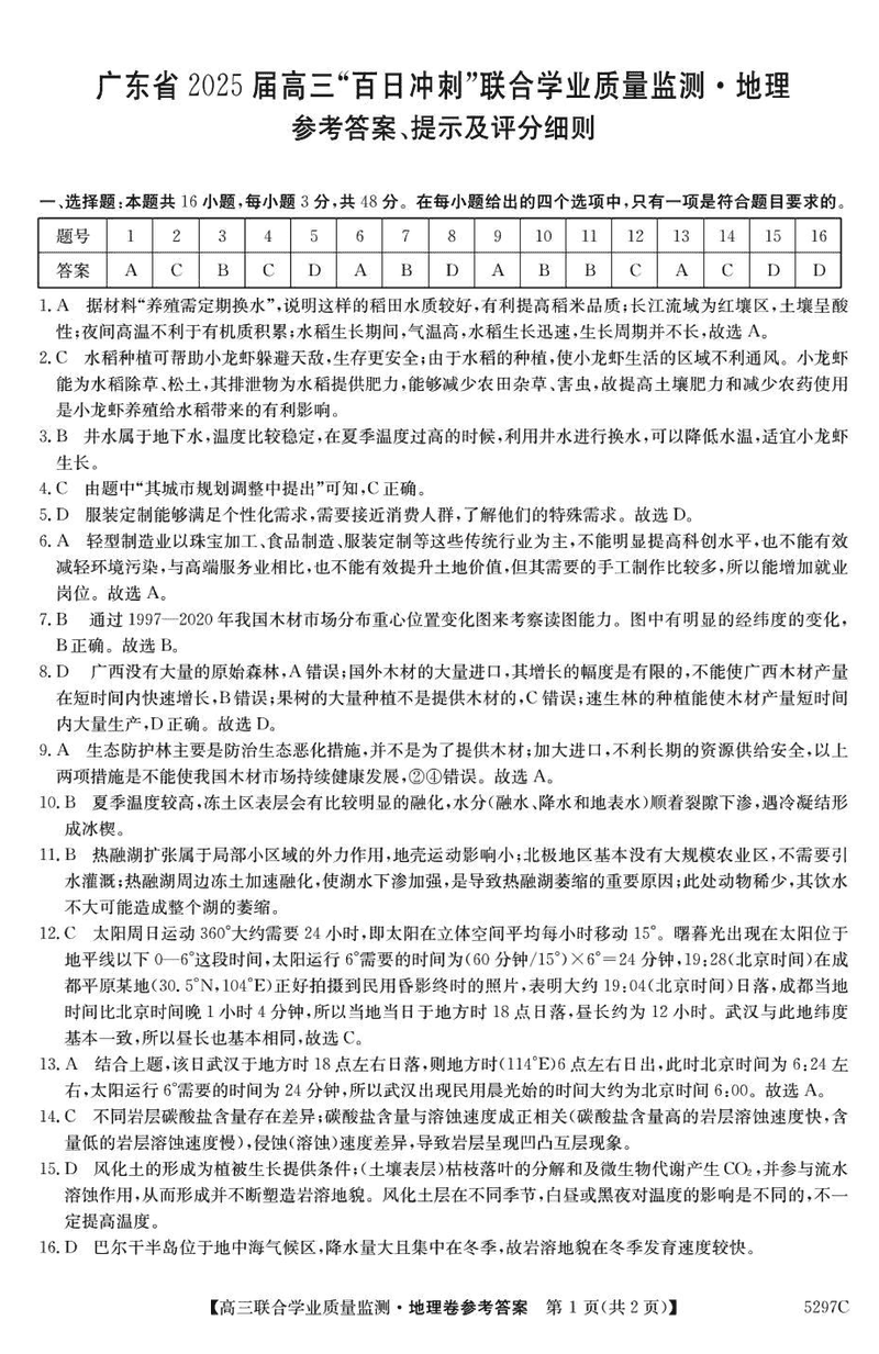 广东省2025届高三"百日冲刺"联合学业质量监测地理试题及答案
