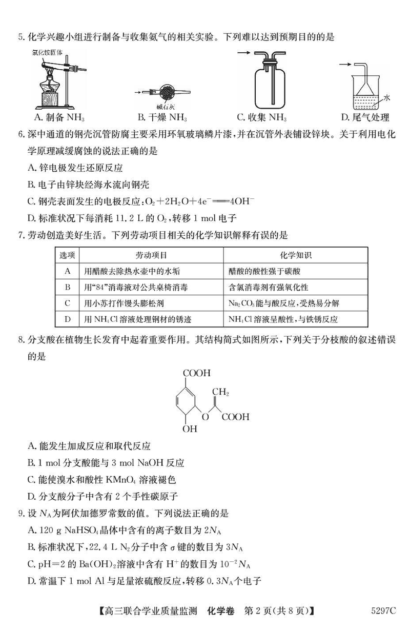 广东省2025届高三"百日冲刺"联合学业质量监测化学试题及答案