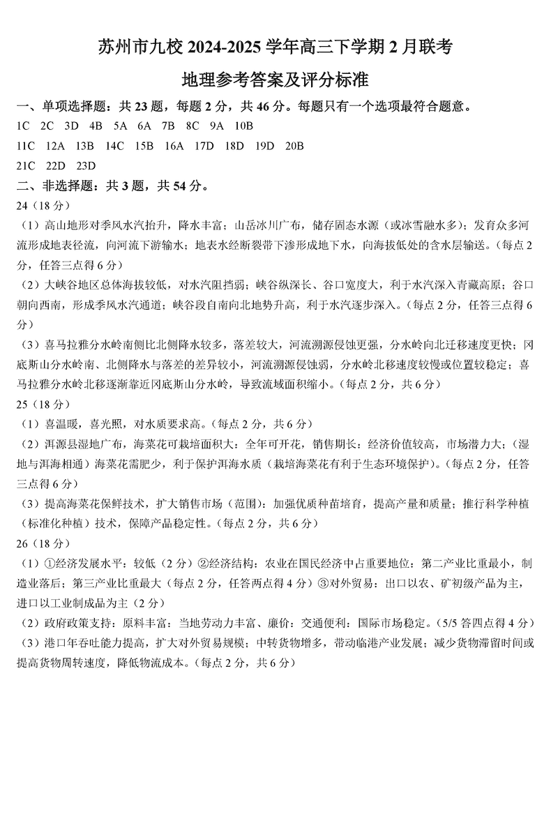 江苏决胜高考2025届高三下学期2月联考地理考试已于近日开考,为方便考生考后及时查看考试情况,查漏补缺、弥补不足,本文整理了试题答案解析相关信息!