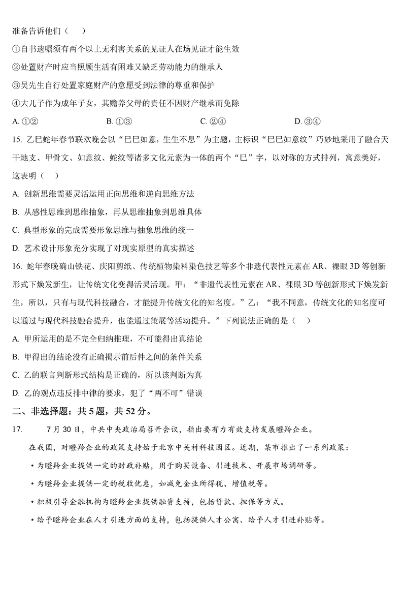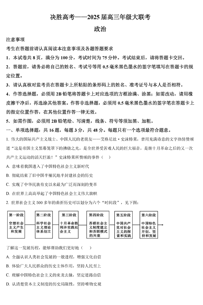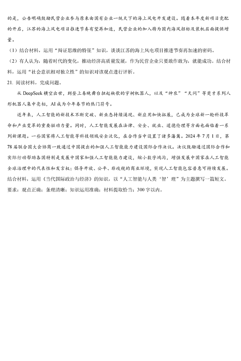 江苏决胜高考2025届高三下学期2月联考政治试题及答案