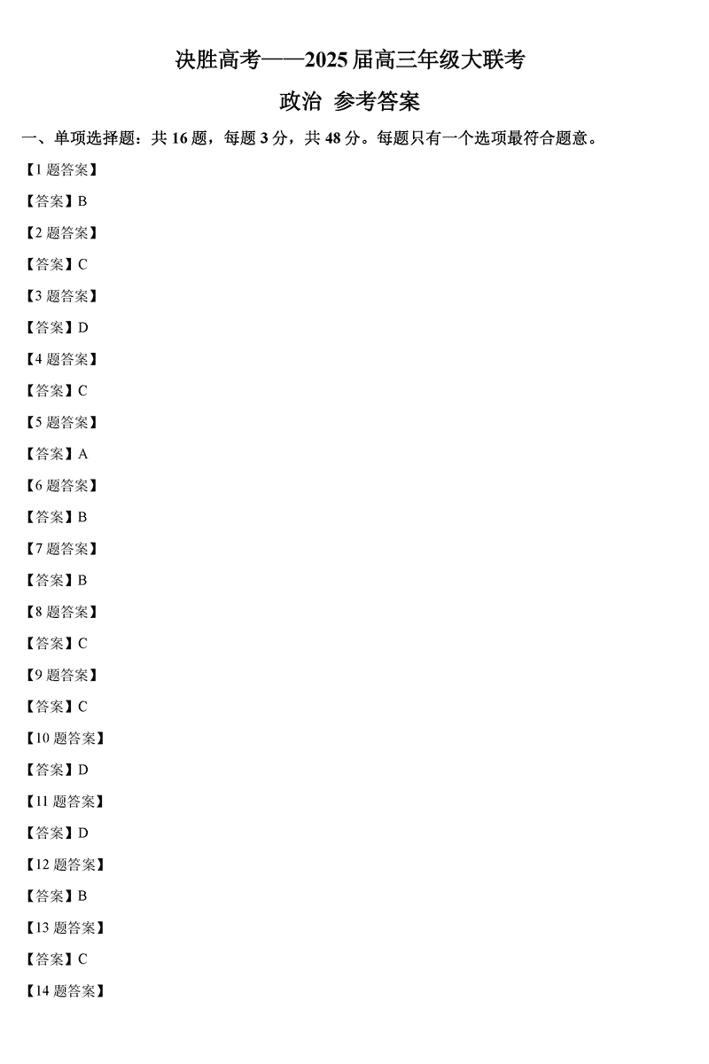 江苏决胜高考2025届高三下学期2月联考政治考试已于近日开考,为方便考生考后及时查看考试情况,查漏补缺、弥补不足,本文整理了试题答案解析相关信息!