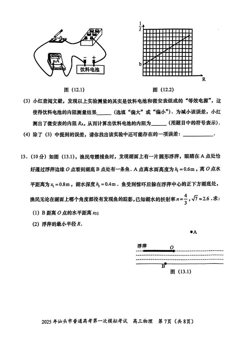 汕头一模2025届高三下学期第一次模拟考物理试题及答案