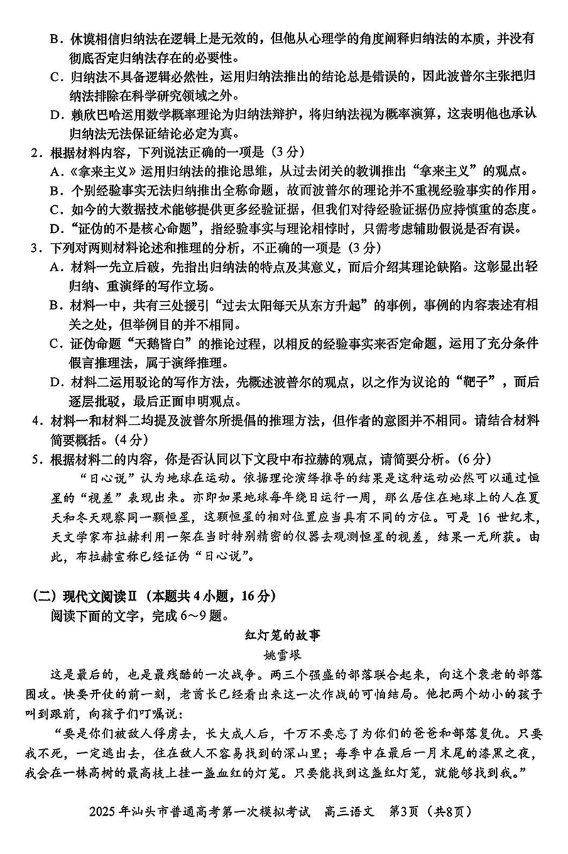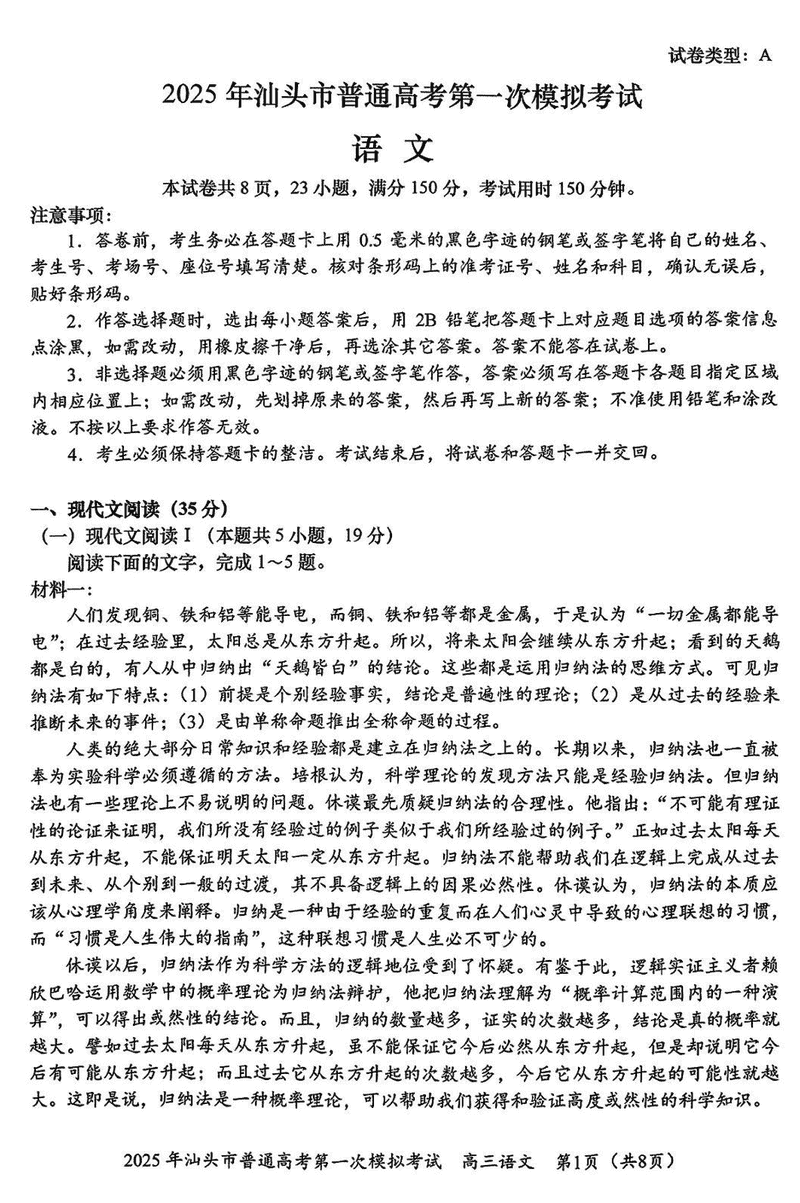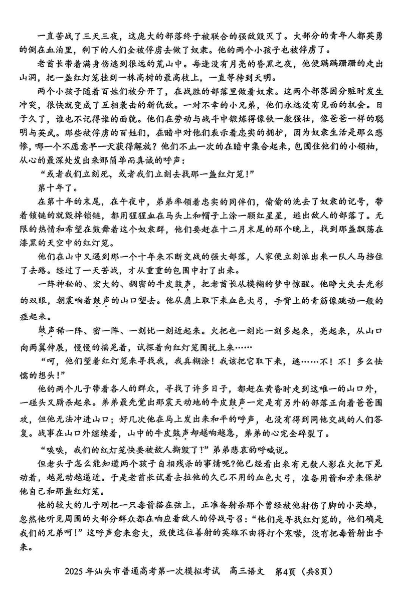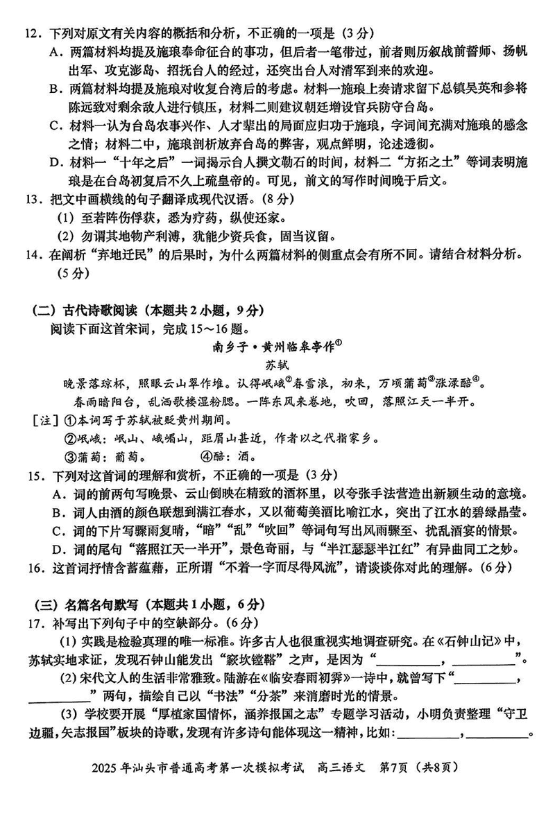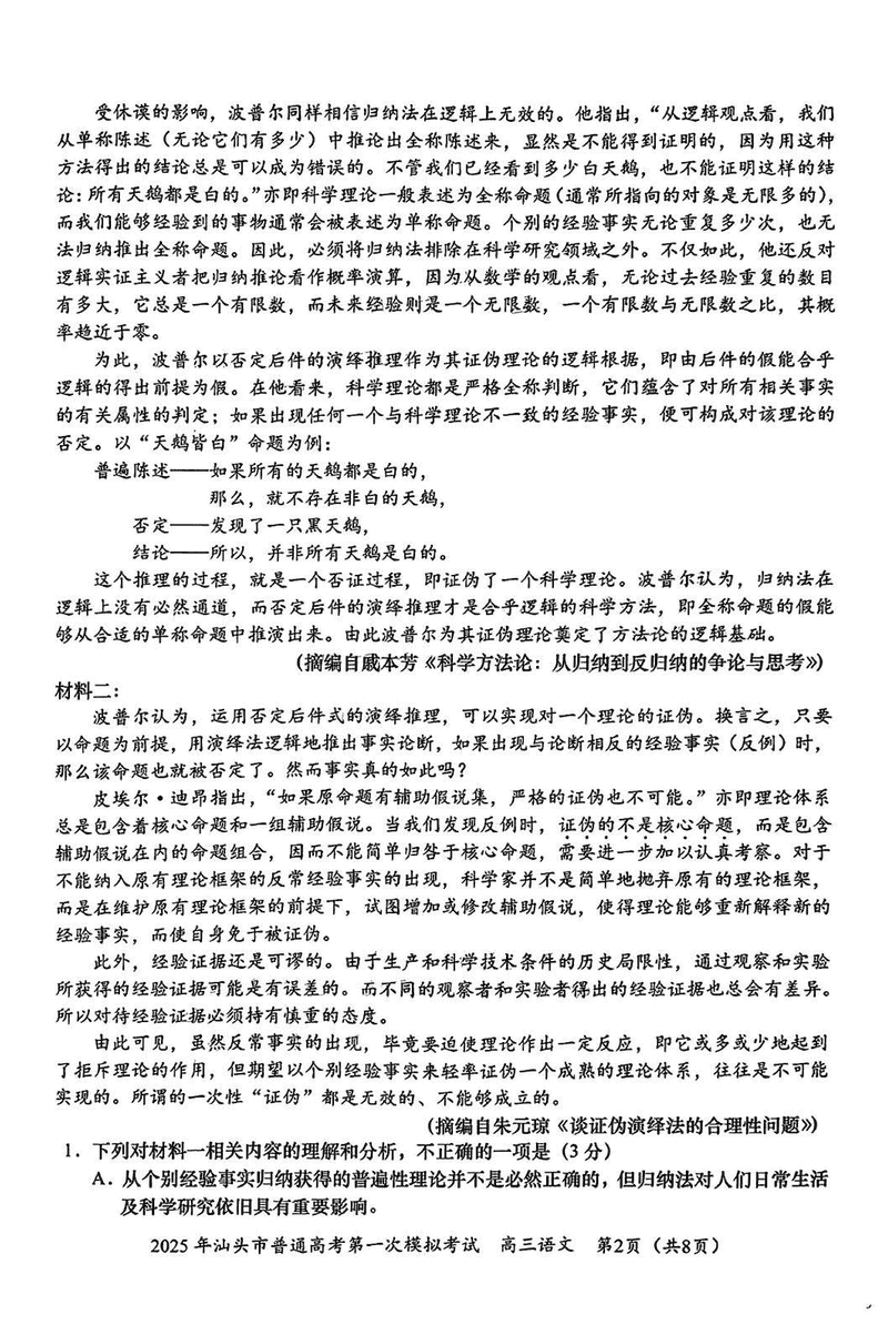 汕头一模2025届高三下学期第一次模拟考语文试题及答案