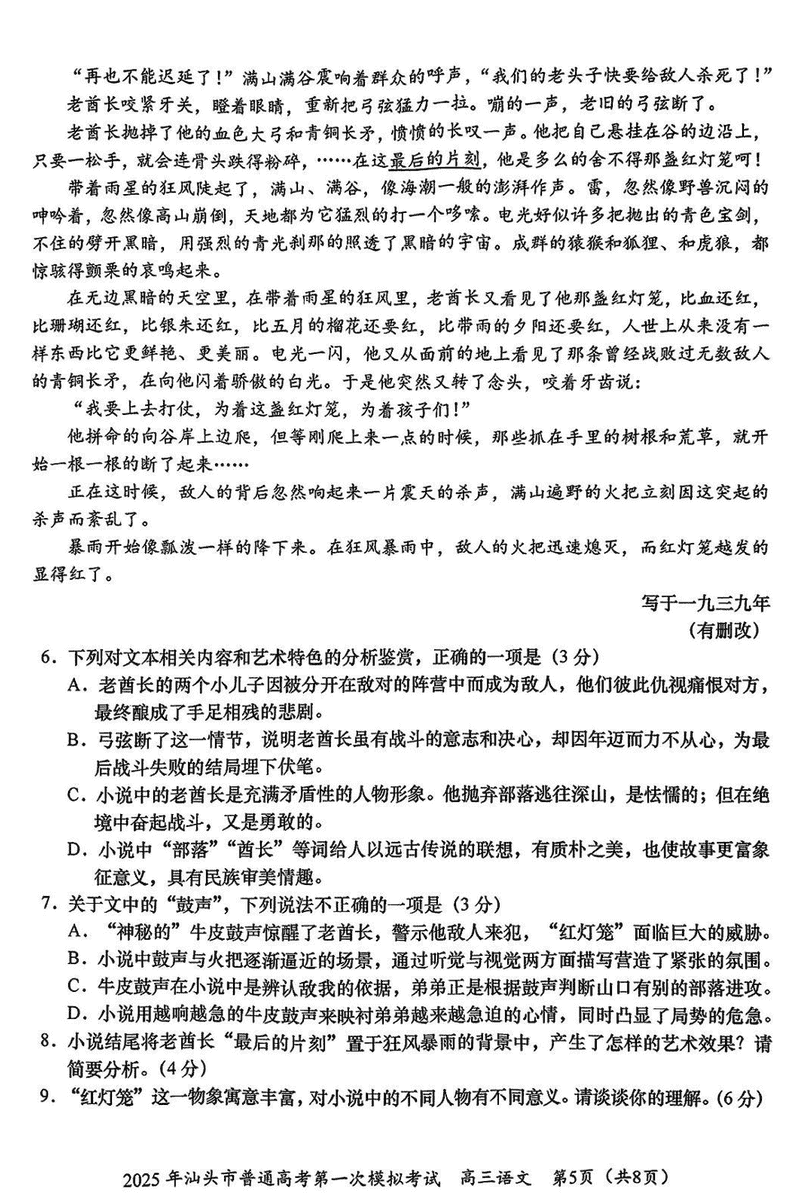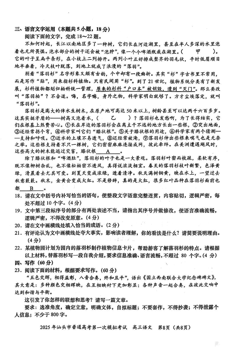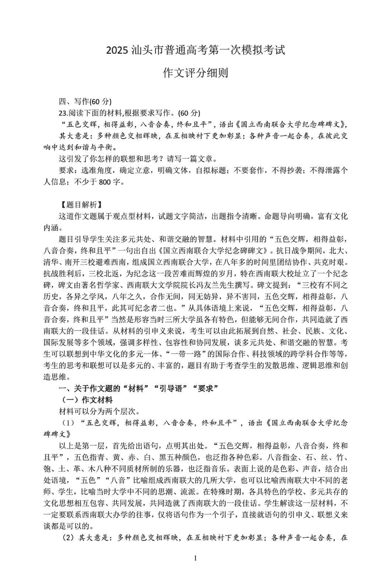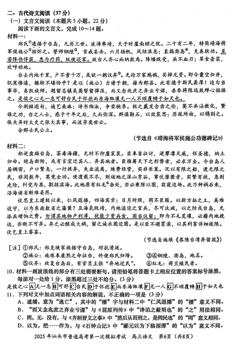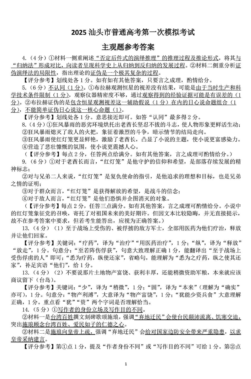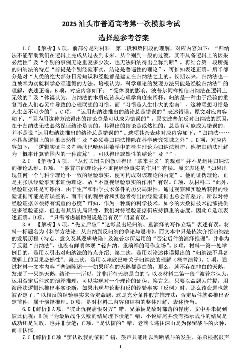 汕头一模2025届高三下学期第一次模拟考语文考试已于近日开考,为方便考生考后及时查看考试情况,查漏补缺、弥补不足,本文整理了试题答案解析相关信息!