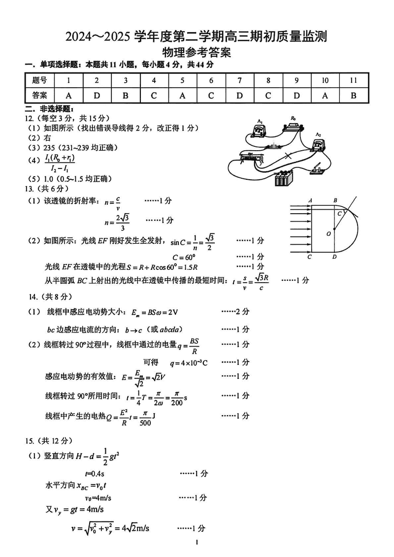 江苏镇江2024-2025学年高三下学期期初质量监测物理试题及答案
