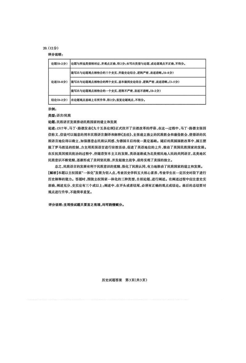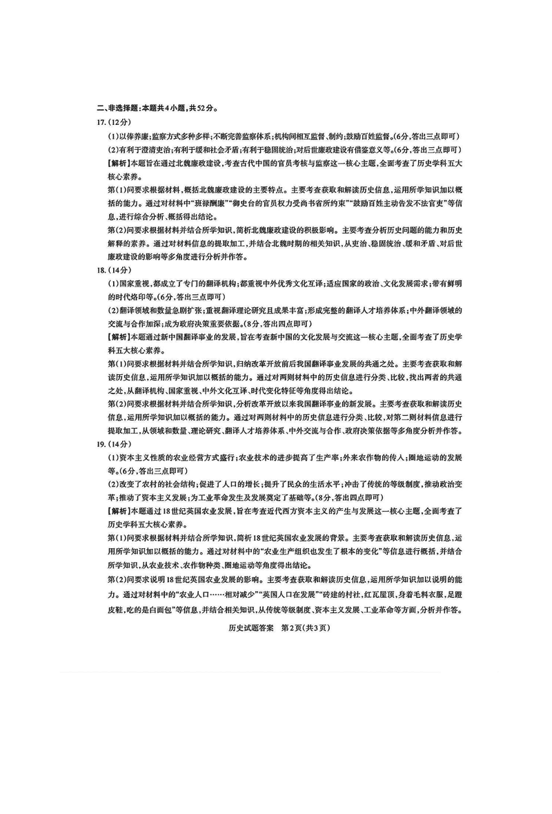历史试题及答案解析