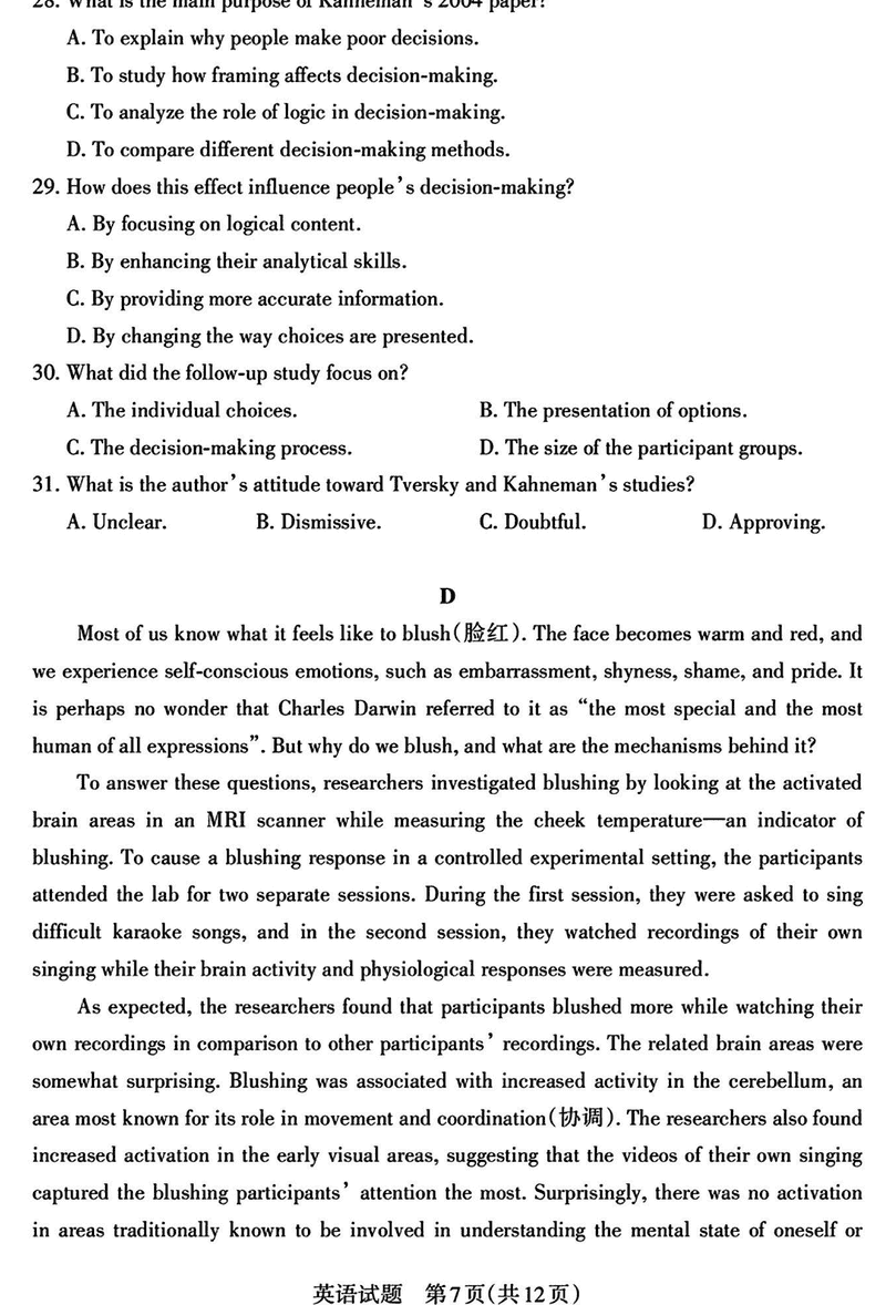 山西一模2025届高三下考前适应性测试启航卷英语试题及答案