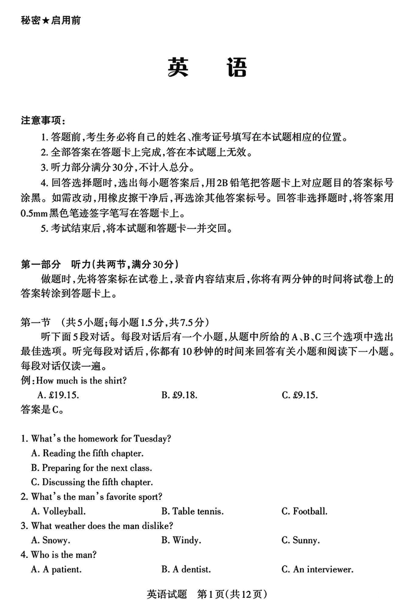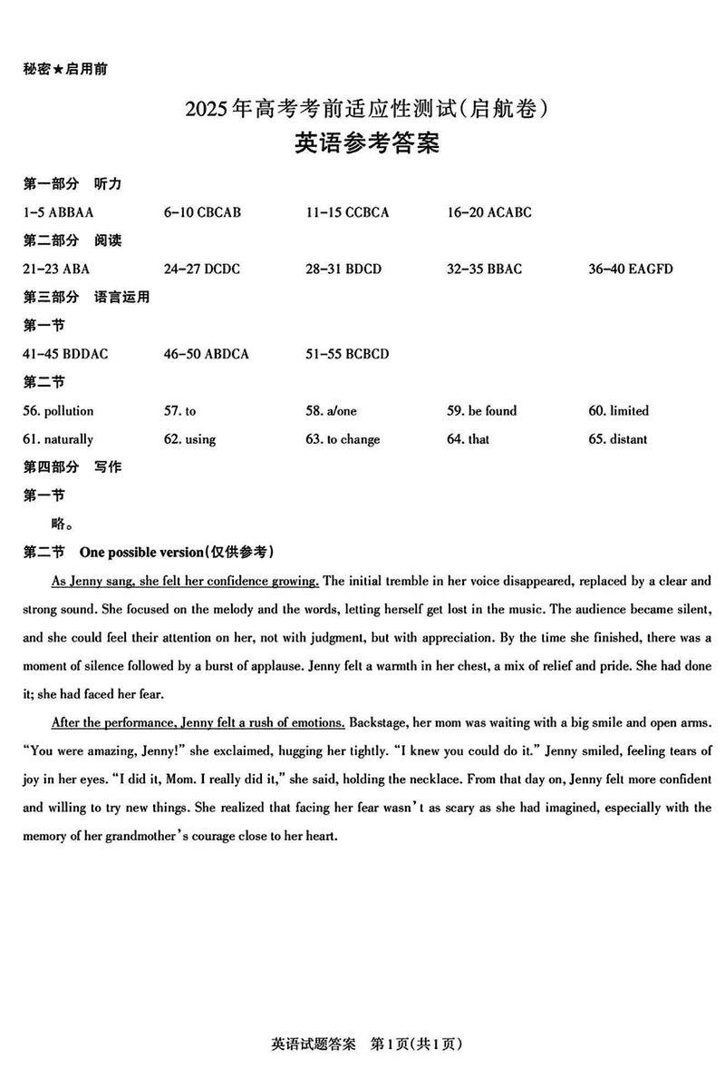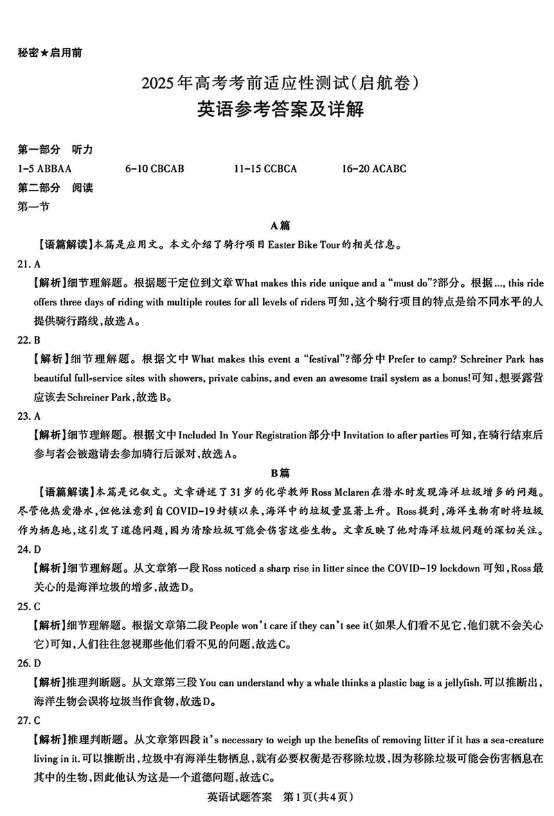 山西一模2025届高三下考前适应性测试启航卷英语考试已于近日开考,为方便考生考后及时查看考试情况,查漏补缺、弥补不足,本文整理了试题答案解析相关信息!