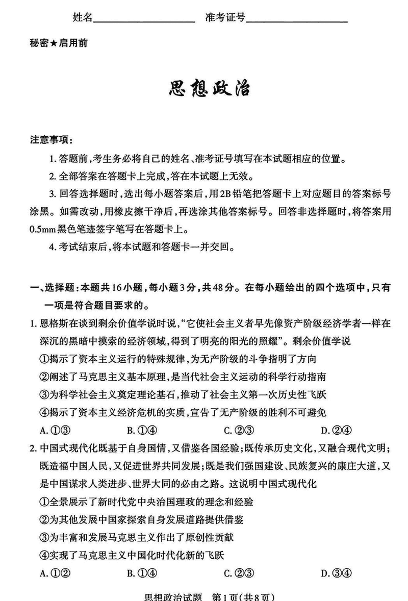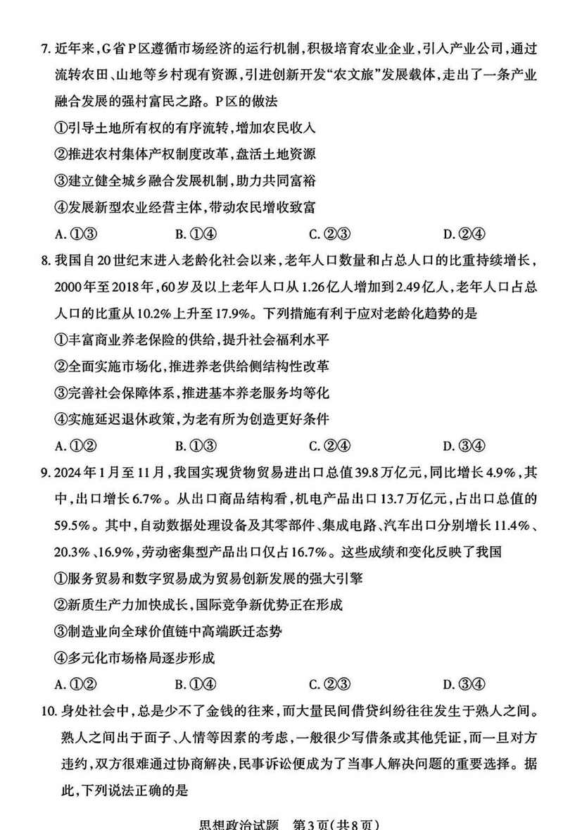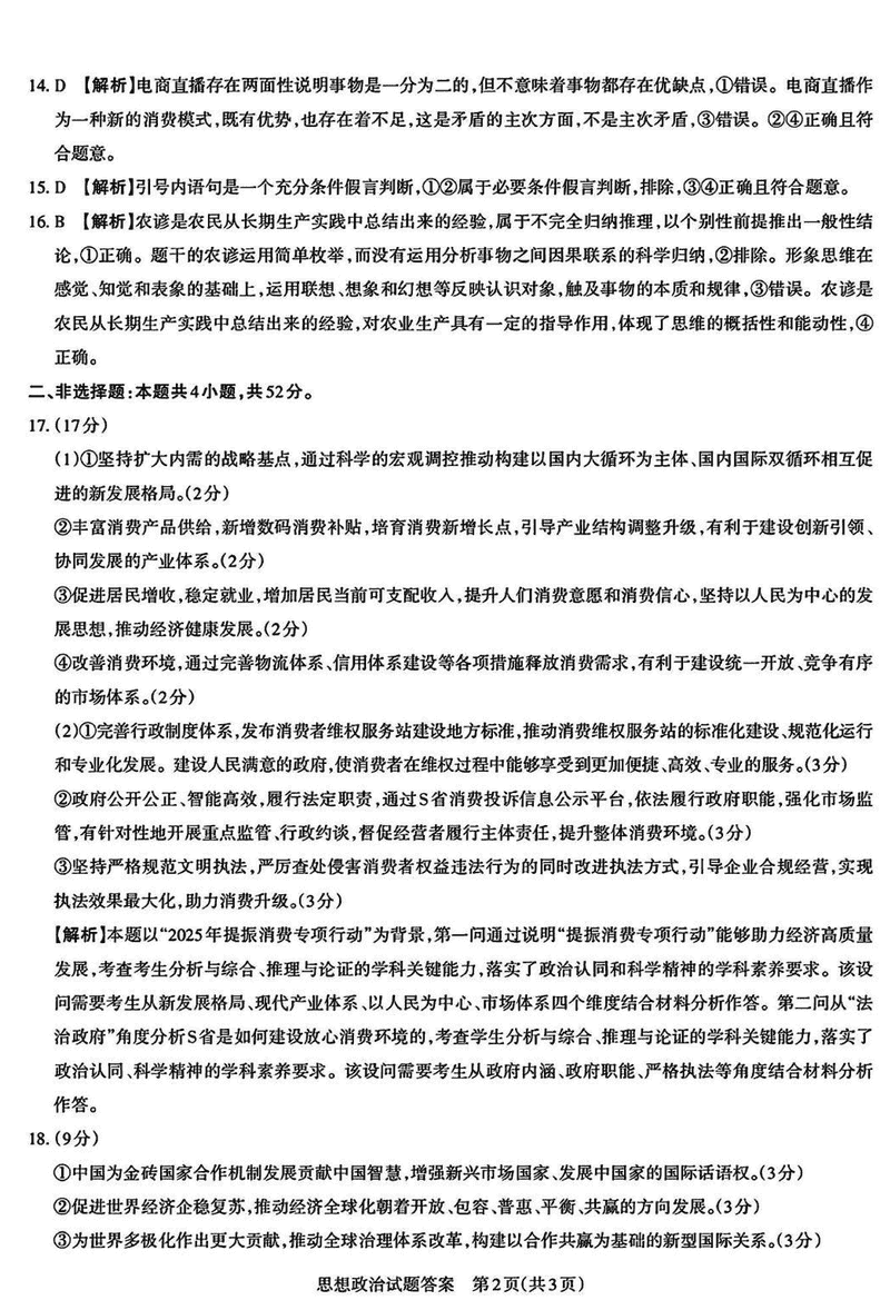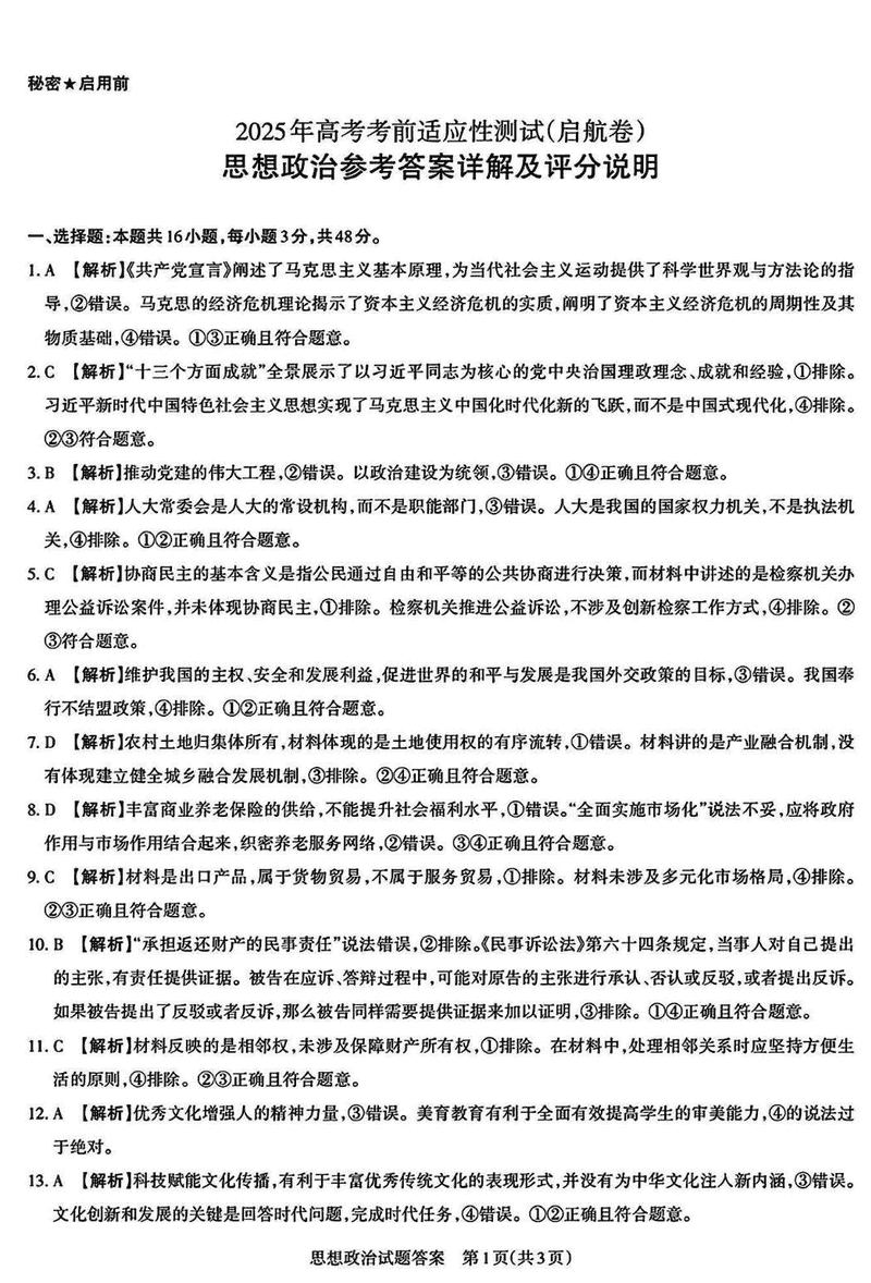 山西一模2025届高三下考前适应性测试启航卷政治试题及答案