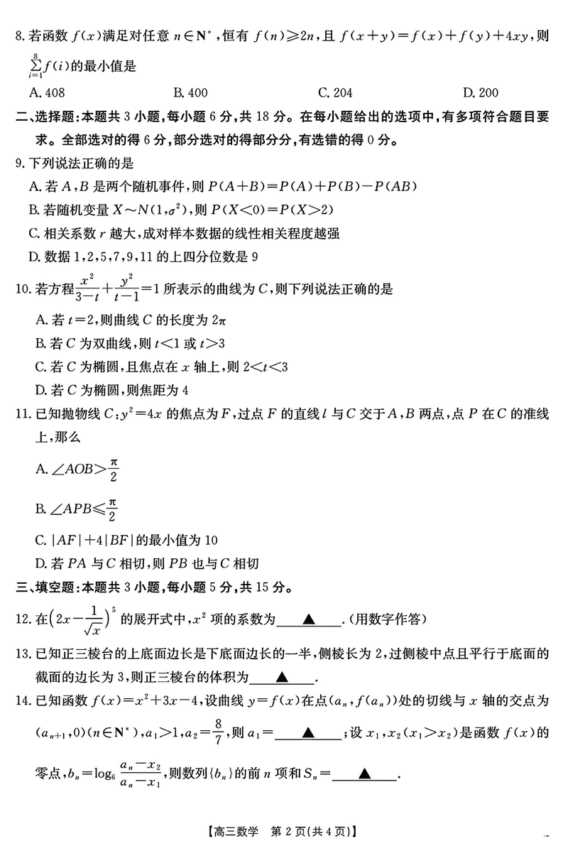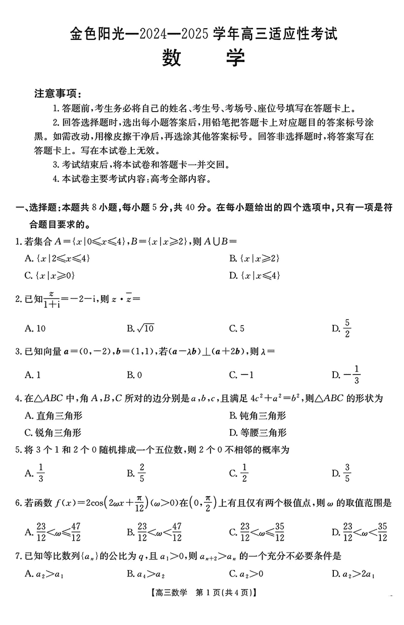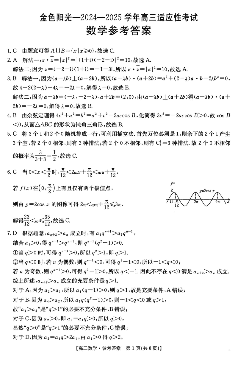 浙江金色阳光2024-2025学年高三下2月适应性数学考试已于近日开考,为方便考生考后及时查看考试情况,查漏补缺、弥补不足,本文整理了试题答案解析相关信息!