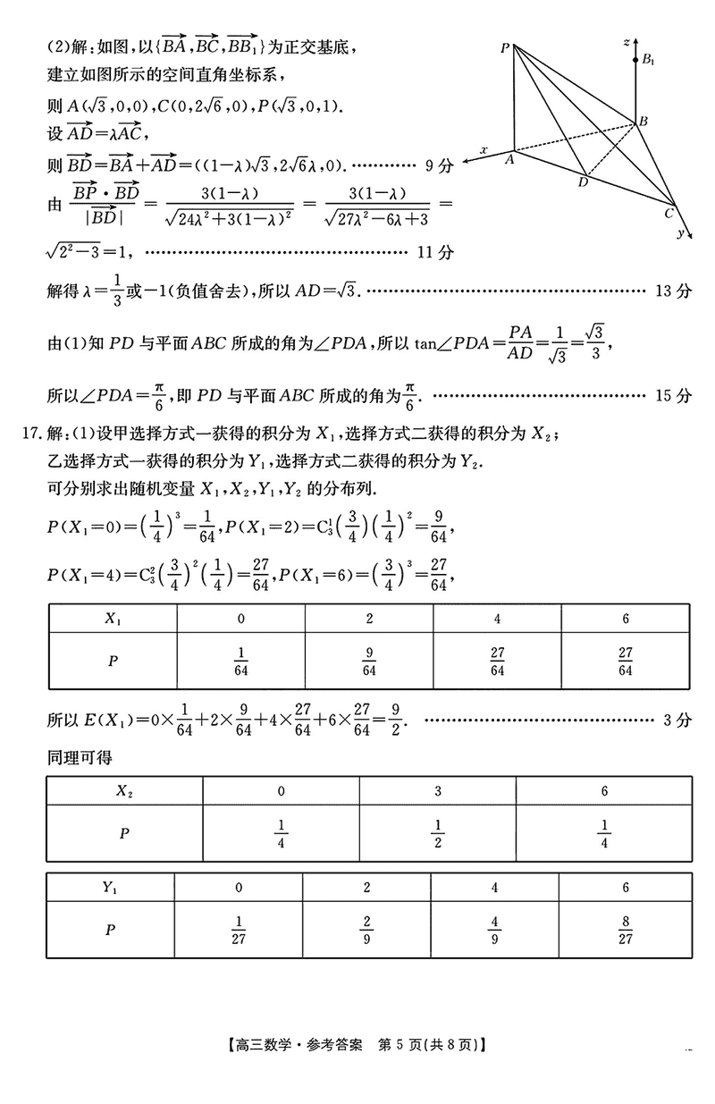 浙江金色阳光2024-2025学年高三下2月适应性数学试题及答案