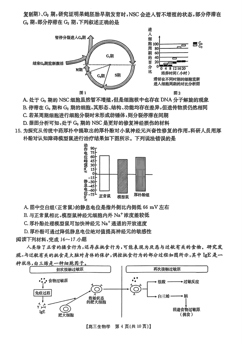 浙江金色阳光2024-2025学年高三下2月适应性生物试题及答案
