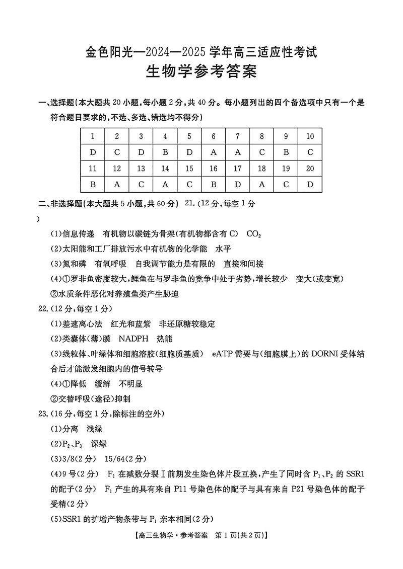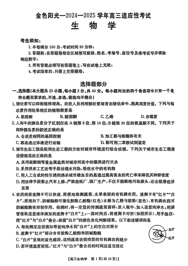 浙江金色阳光2024-2025学年高三下2月适应性生物考试已于近日开考,为方便考生考后及时查看考试情况,查漏补缺、弥补不足,本文整理了试题答案解析相关信息!