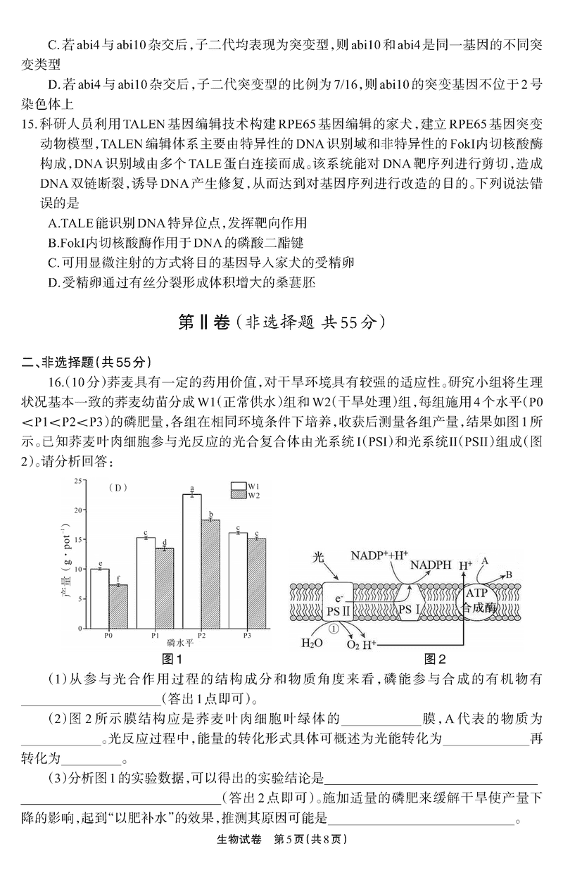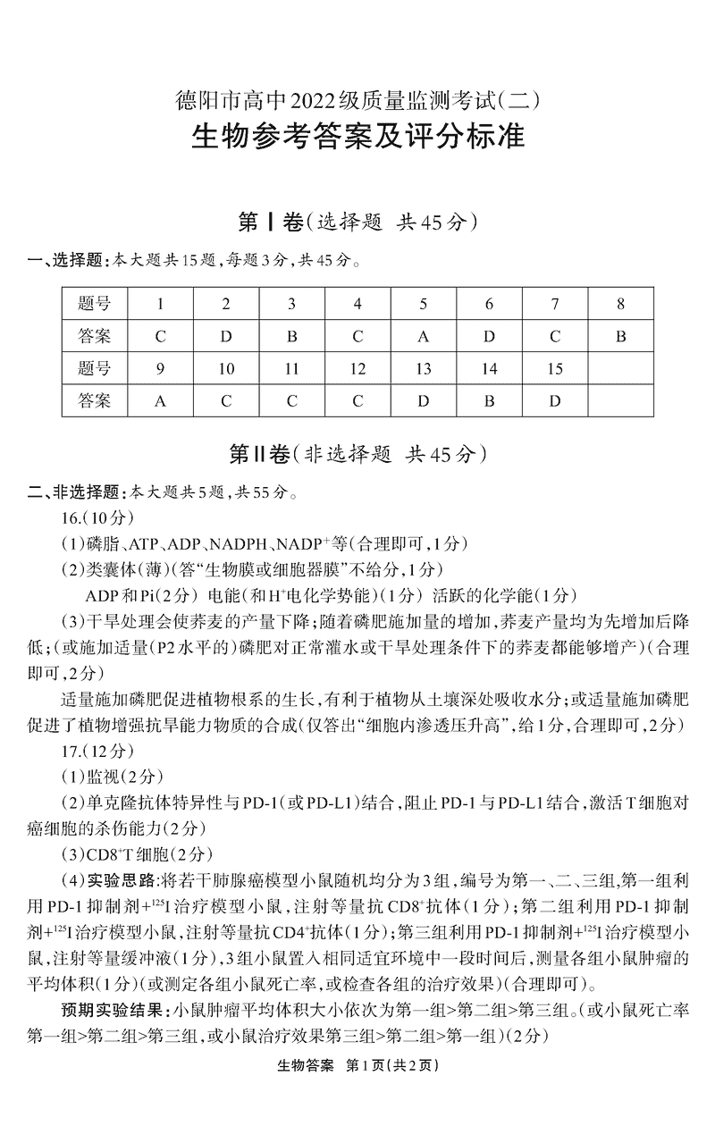 四川德阳高中2025届质量监测考试(二)生物考试已于近日开考,为方便考生考后及时查看考试情况,查漏补缺、弥补不足,本文整理了试题答案解析相关信息!