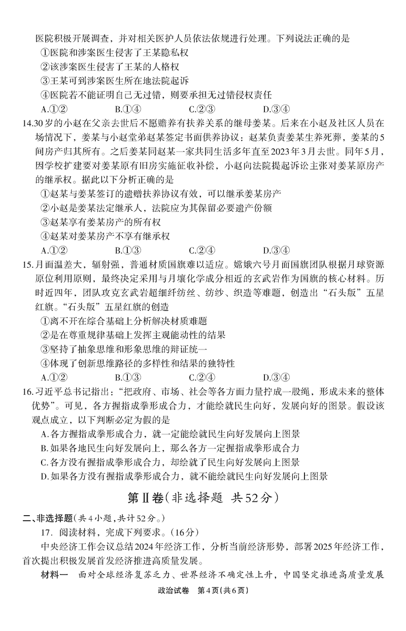 四川德阳高中2025届质量监测考试(二)政治考试已于近日开考,为方便考生考后及时查看考试情况,查漏补缺、弥补不足,本文整理了试题答案解析相关信息!