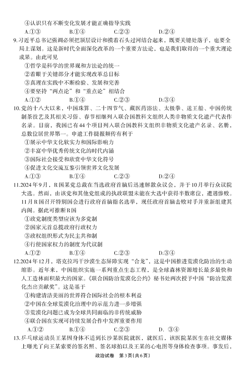 四川德阳高中2025届质量监测考试(二)政治试题及答案