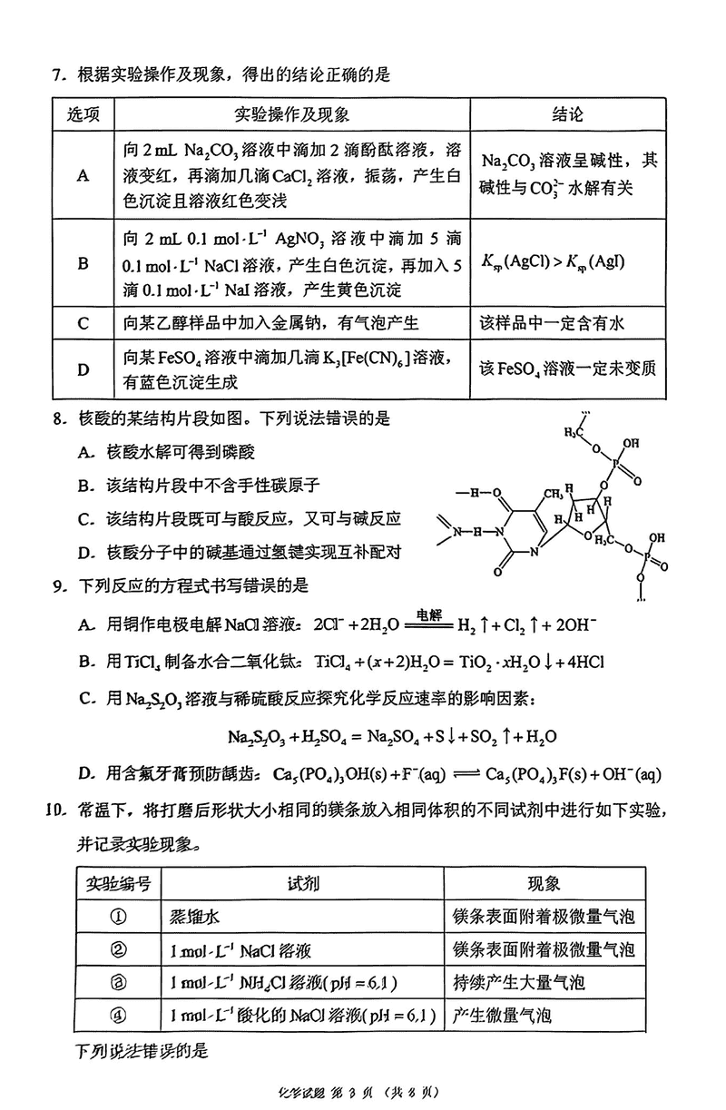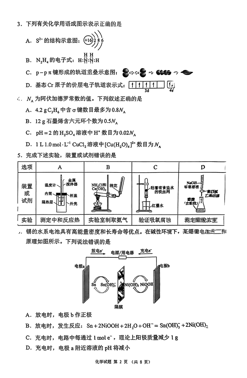 四川蓉城名校联盟新高考2025届第二次联合诊断化学试题及答案