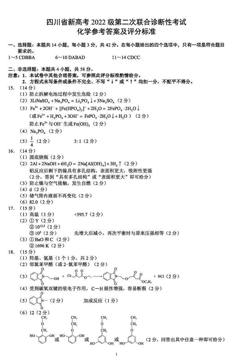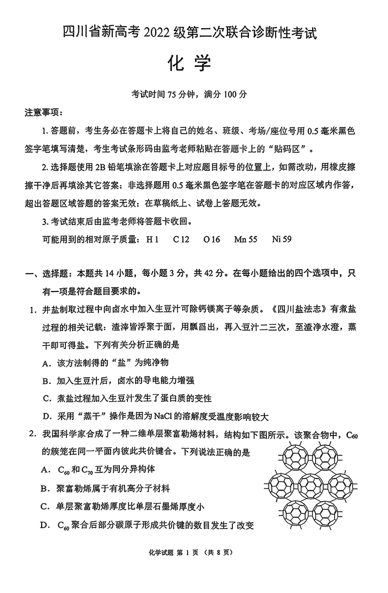 四川蓉城名校联盟新高考2025届第二次联合诊断化学考试已于近日开考,为方便考生考后及时查看考试情况,查漏补缺、弥补不足,本文整理了试题答案解析相关信息!