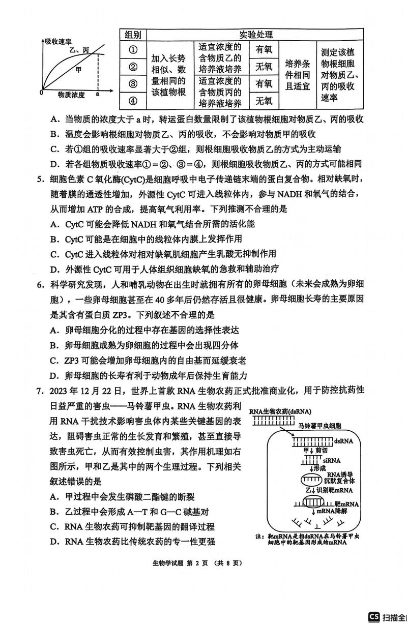 四川蓉城名校联盟新高考2025届第二次联合诊断生物试题及答案