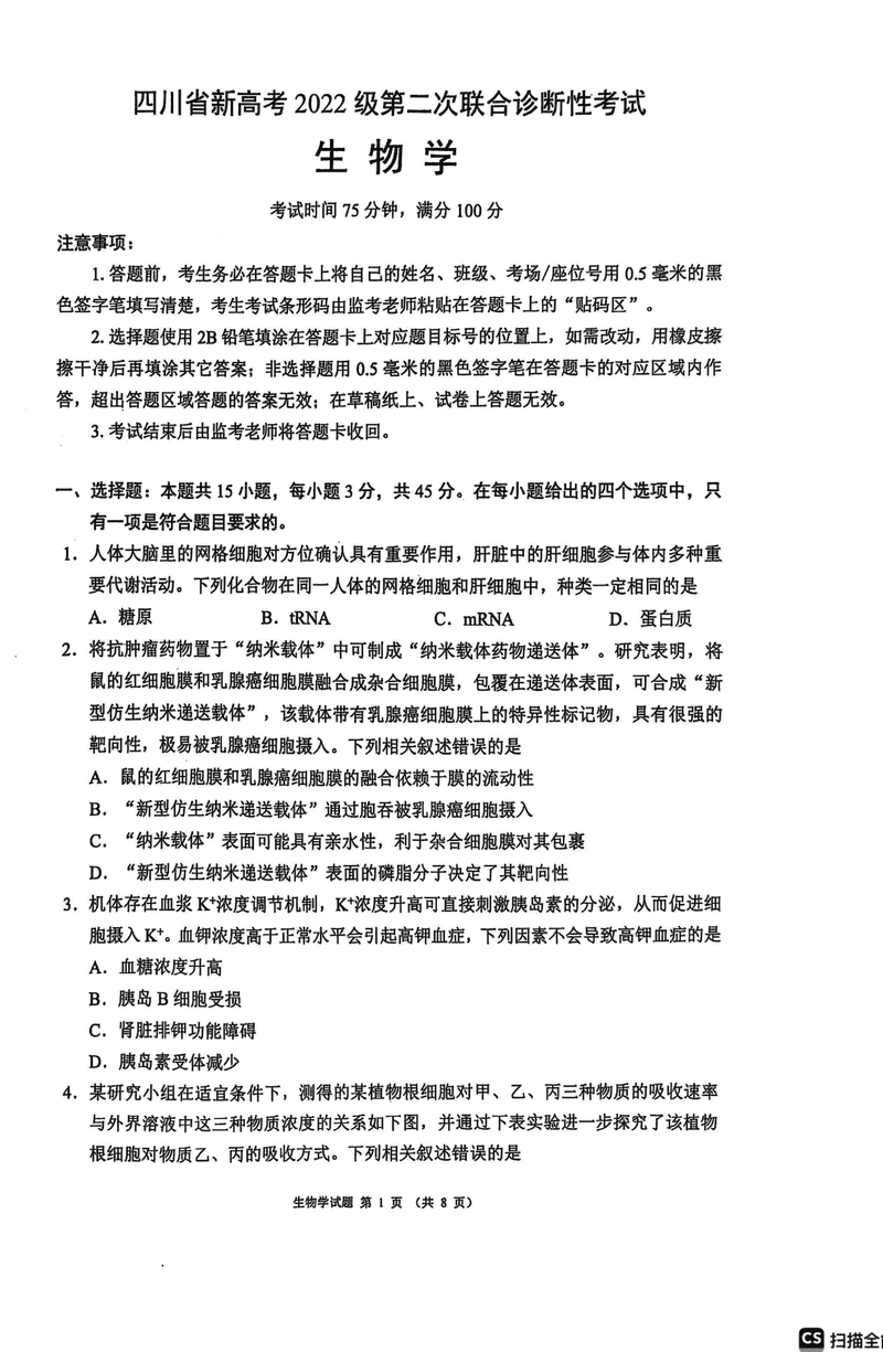 四川蓉城名校联盟新高考2025届第二次联合诊断生物考试已于近日开考,为方便考生考后及时查看考试情况,查漏补缺、弥补不足,本文整理了试题答案解析相关信息!