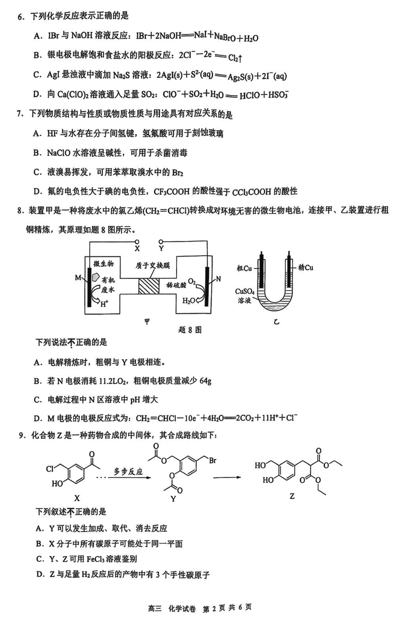 江苏镇江2024-2025学年高三下学期期初质量监测化学试题及答案