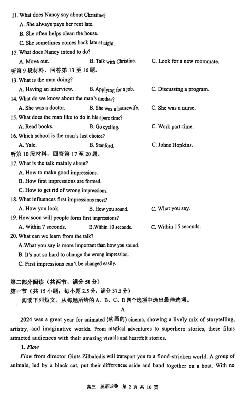 江苏镇江2024-2025学年高三下学期期初质量监测英语试题及答案