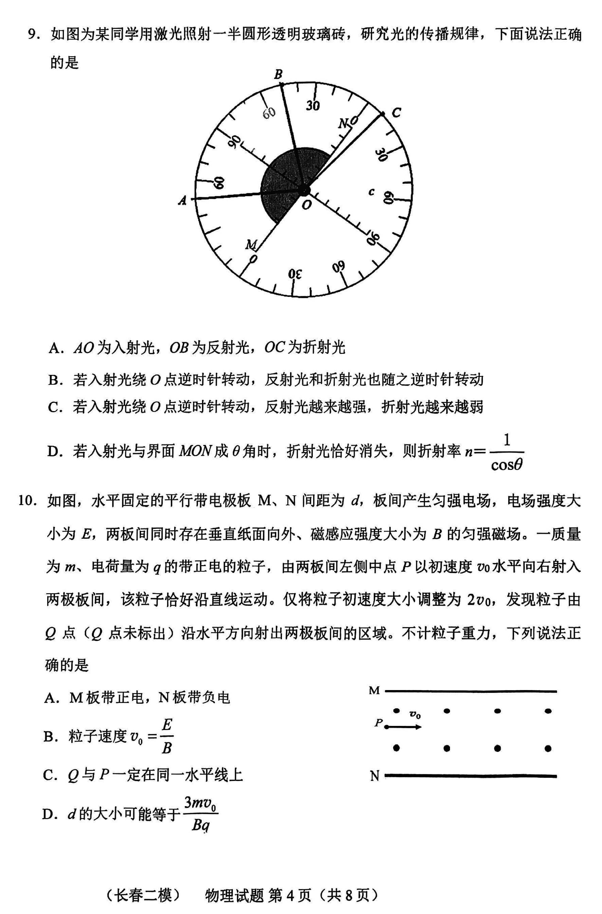 长春二模2025届高三质量监测(二)物理试题及答案 时间:2025-02-26 吉林 理综试题 长春二模2025届高三质量监测(二)物理考试已于近日开考,为方便考生考后及时查看考试情况,查漏补缺、弥补不足,本文整理了试题答案解析相关信息! 汇总:长春二模2025届高三质量监测(二)试题及答案汇总 物理试题及答案解析