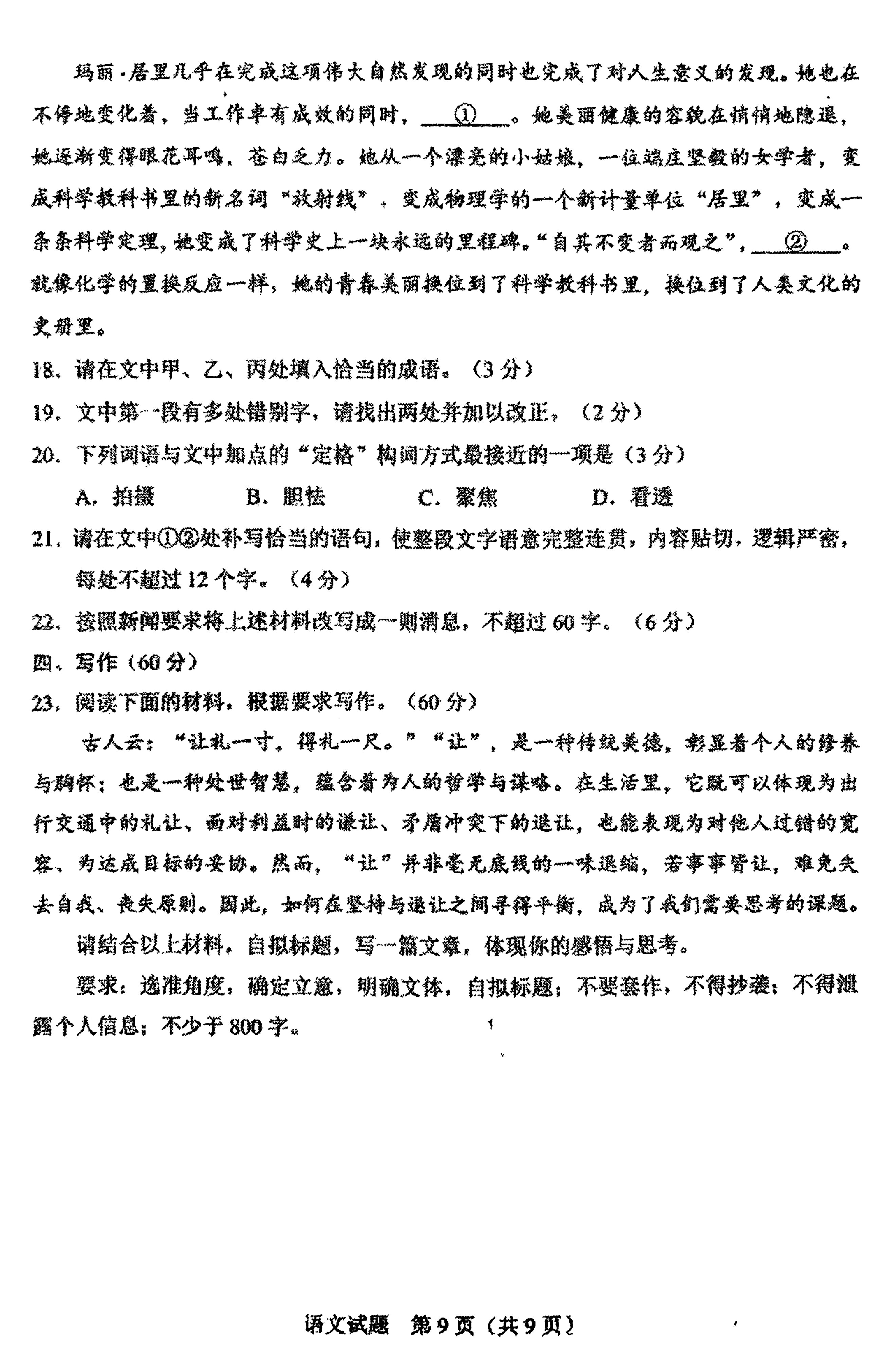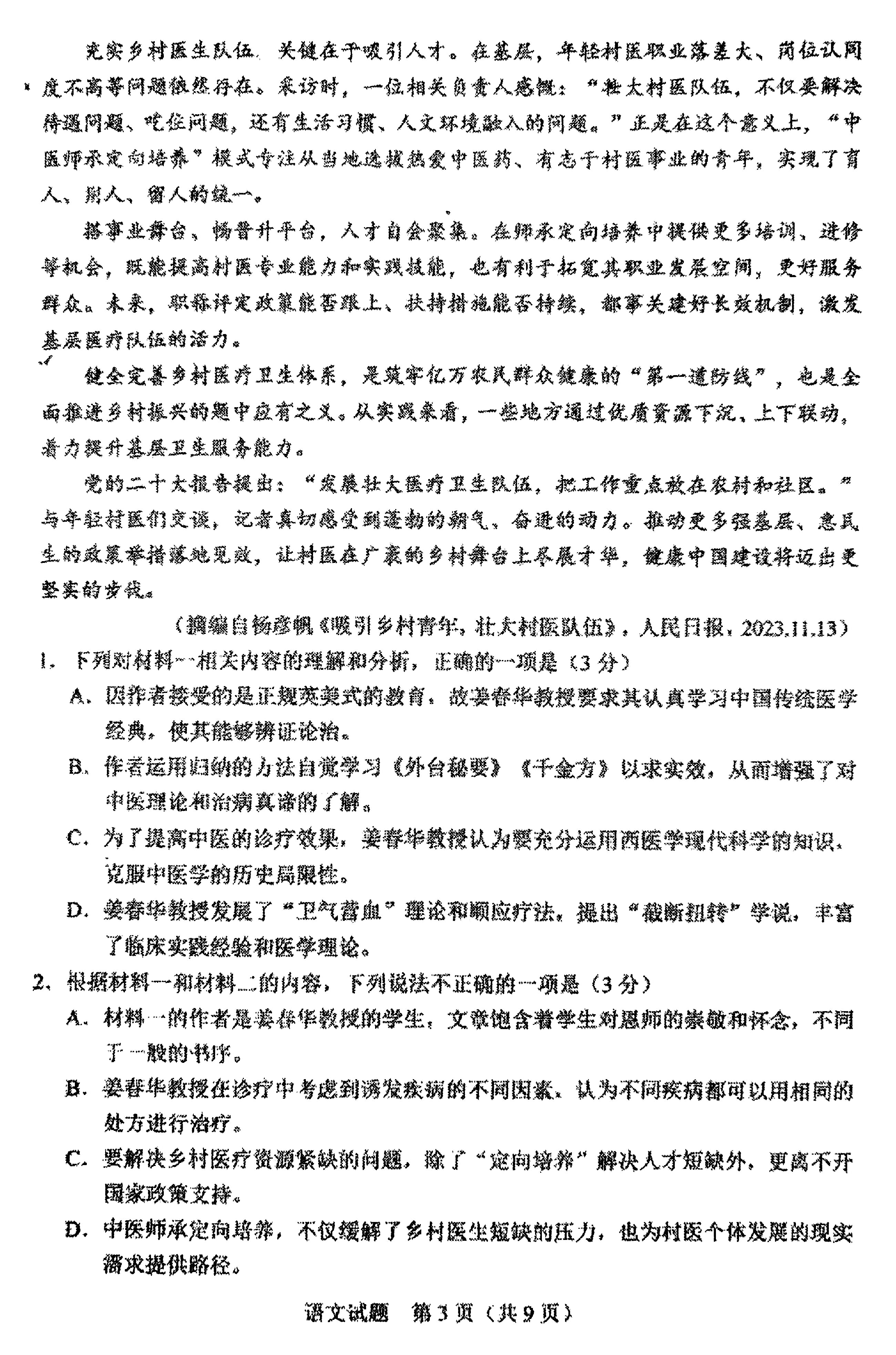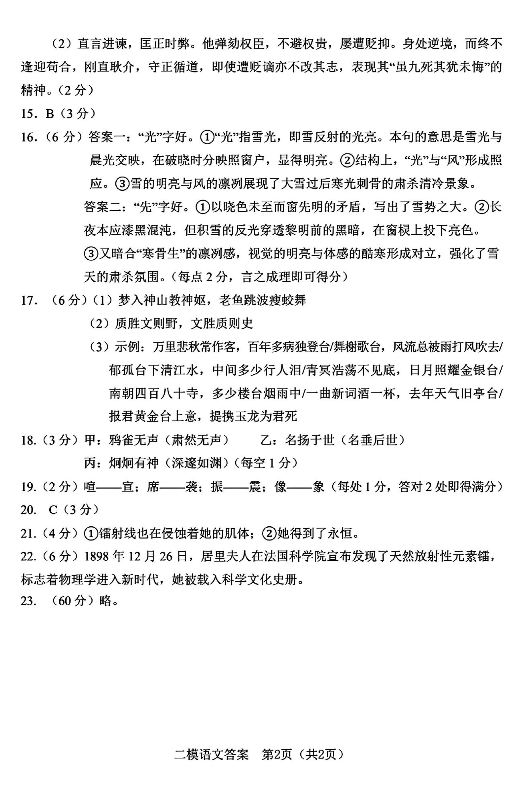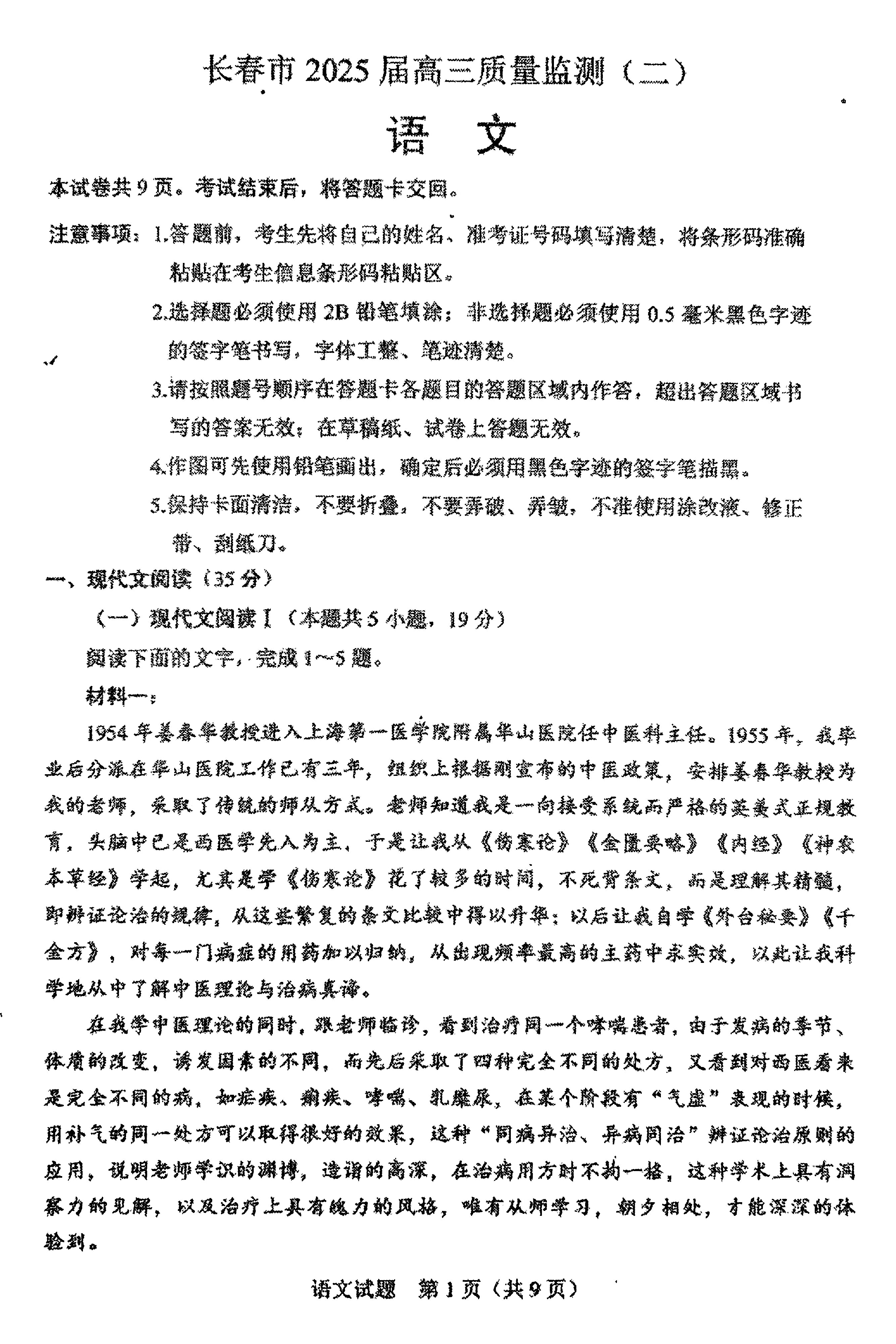 长春二模2025届高三质量监测(二)语文试题及答案 时间:2025-02-26 吉林 语文试题 长春二模2025届高三质量监测(二)语文考试已于近日开考,为方便考生考后及时查看考试情况,查漏补缺、弥补不足,本文整理了试题答案解析相关信息! 汇总:长春二模2025届高三质量监测(二)试题及答案汇总 语文试题及答案解析