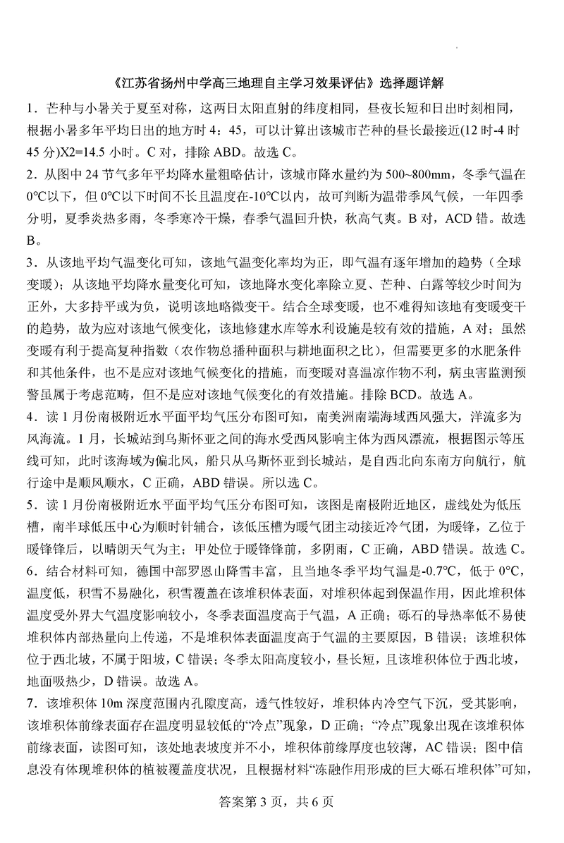 扬州中学2024-2025学年高三下学期2月阶段月考地理考试已于近日开考,为方便考生考后及时查看考试情况,查漏补缺、弥补不足,本文整理了试题答案解析相关信息!