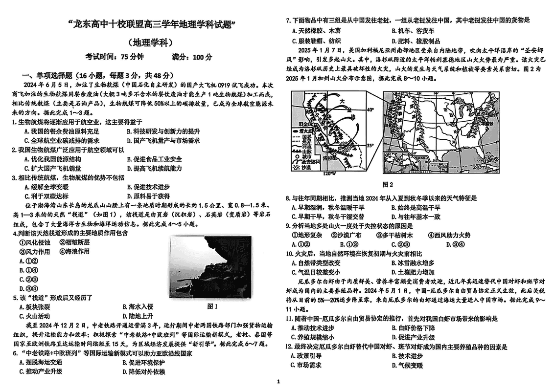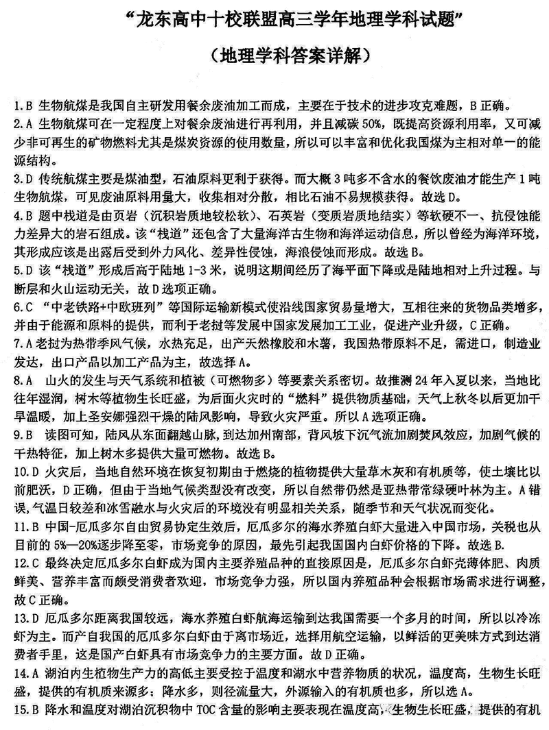 黑龙江龙东高中十校联盟2025年高三下学期2月适应性地理考试已于近日开考,为方便考生考后及时查看考试情况,查漏补缺、弥补不足,本文整理了试题答案解析相关信息!