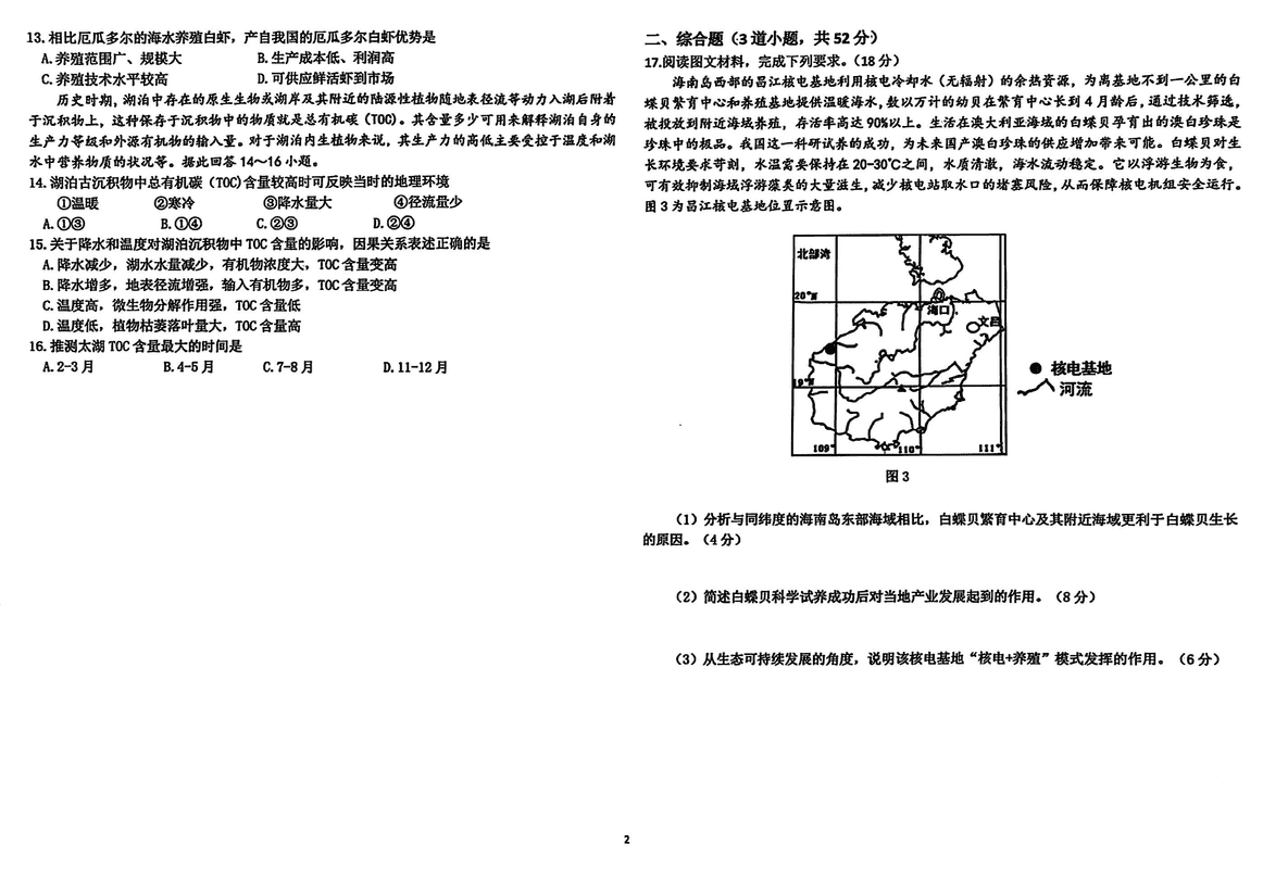 黑龙江龙东高中十校联盟2025年高三下学期2月适应性地理试题及答案