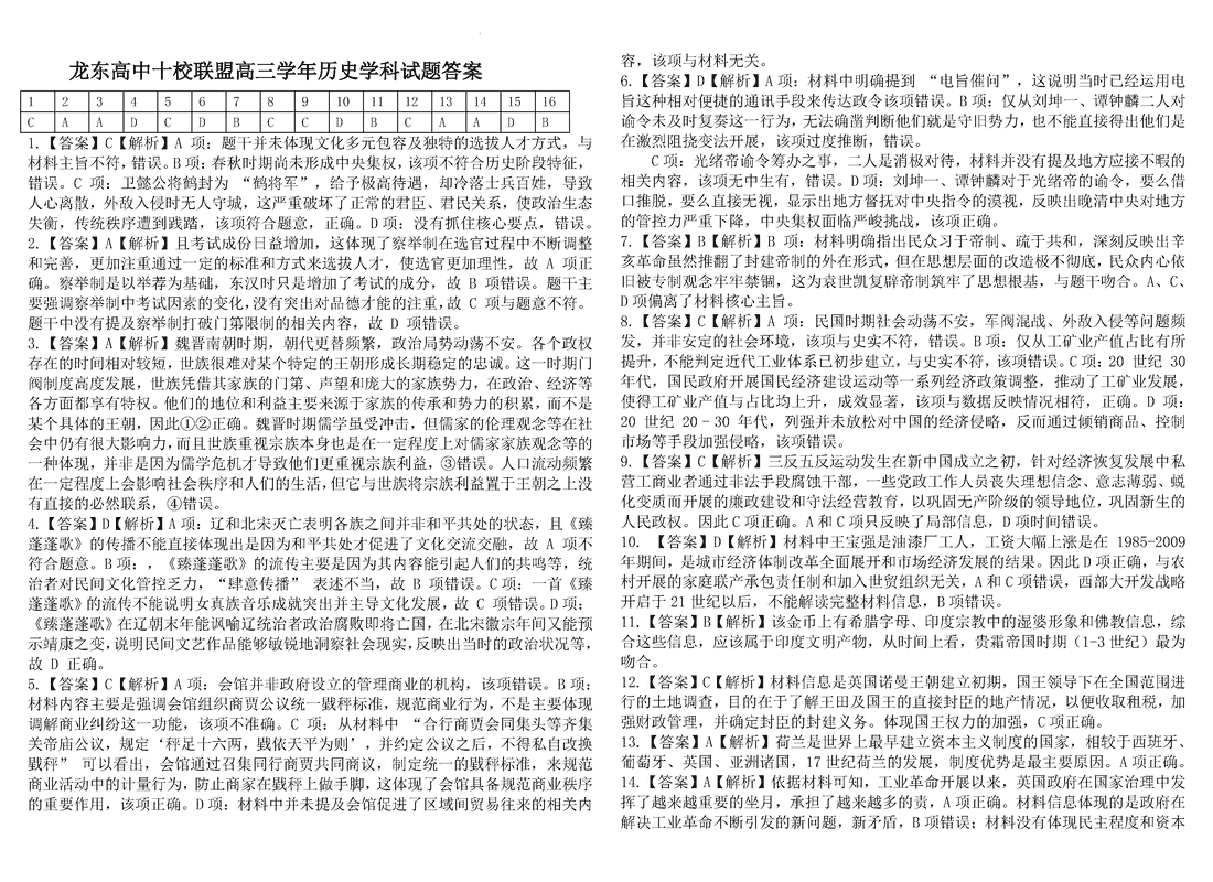 黑龙江龙东高中十校联盟2025年高三下学期2月适应性历史考试已于近日开考,为方便考生考后及时查看考试情况,查漏补缺、弥补不足,本文整理了试题答案解析相关信息!