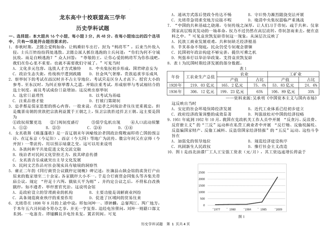 黑龙江龙东高中十校联盟2025年高三下学期2月适应性历史试题及答案